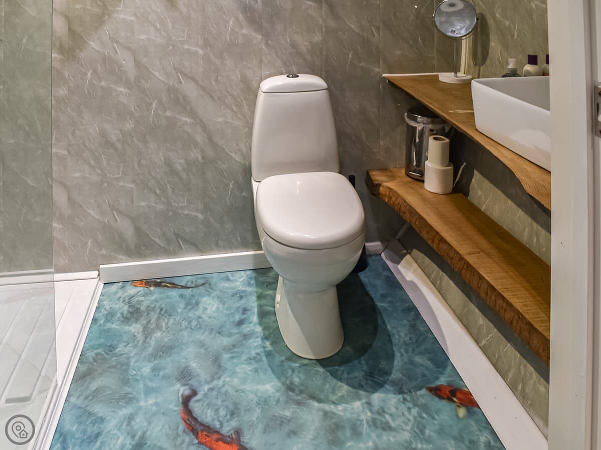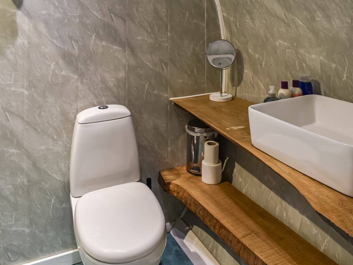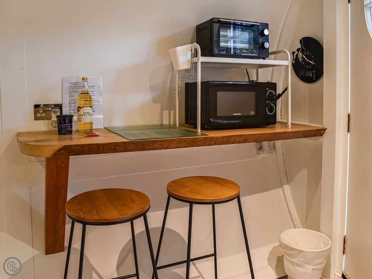 It's a 3 Star place, so it's clean and has what you need. It sleeps two, one bedroom and one bathroom. The whole place is open plan inside, which feels quite spacious. The bed is at one end.