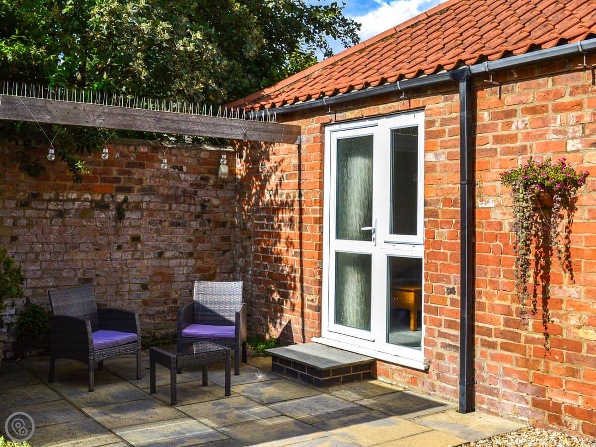 This is Ivy Cottage. It's in Marshchapel, a village in north Lincolnshire. The cottage is detached, but it's in the garden of our main house. You'll have your own space.