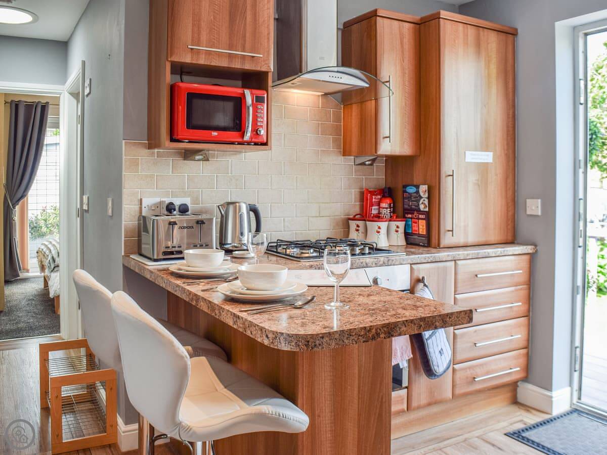 It sleeps two, in one bedroom. There's one bathroom with a walk-in shower. It’s got a 4 Star rating. It's designed to be accessible, so the doorways are wide and there's a shower seat. The bathroom has a bidet toilet and a warm air dryer, which is a bit different.