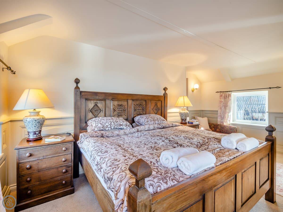 It sleeps four. Two bedrooms, both with their own bathrooms. It's a 5 Star place, which means it's well finished and comfortable. The main bedroom has a very large bed.