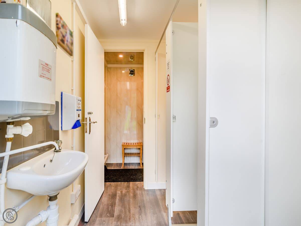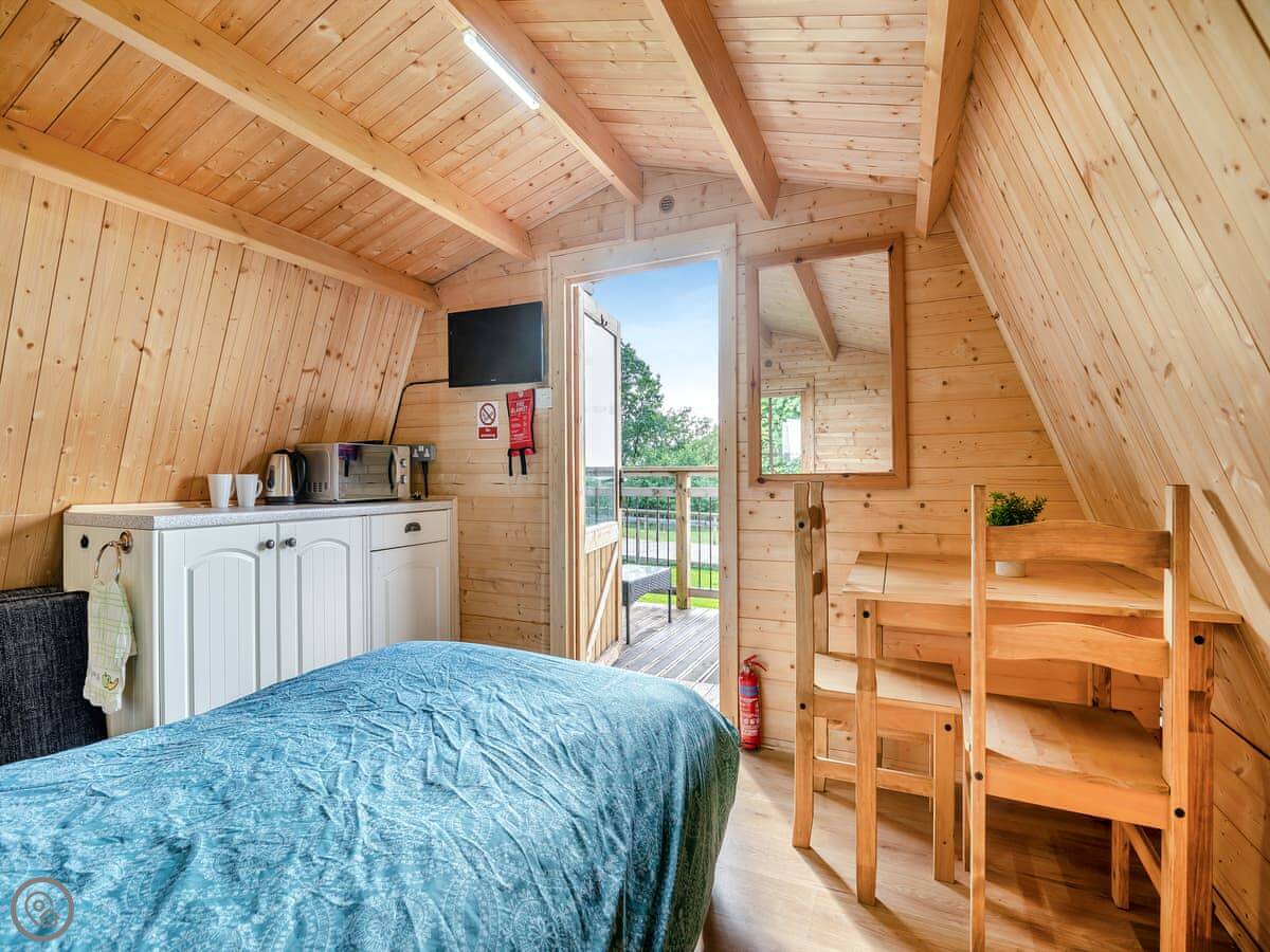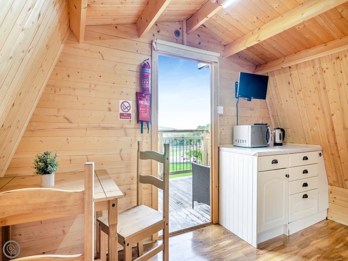 Facilities are simple. There's a kitchenette with a sink and a small hob. A fridge. A TV. Wifi. You can do a BBQ on the deck. There's parking. Bedding and towels are included.
