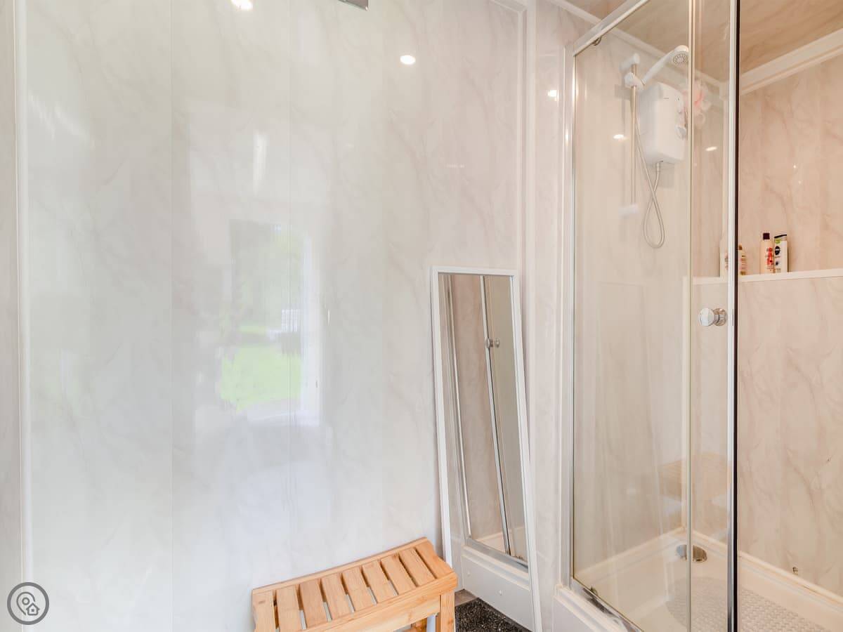It's got a 4 Star rating. It's all one open room. The bed is a sofa bed. There's a separate little shower room and toilet attached. Outside, there's a decked area. The garden is for you, private and enclosed.
