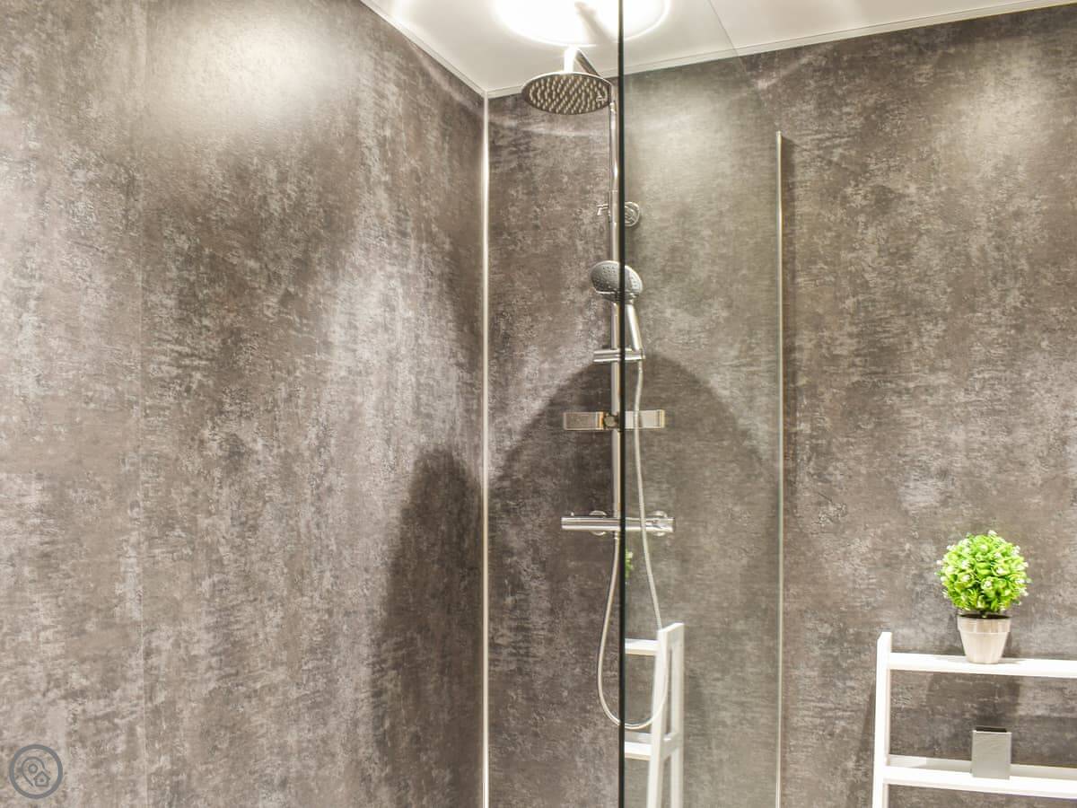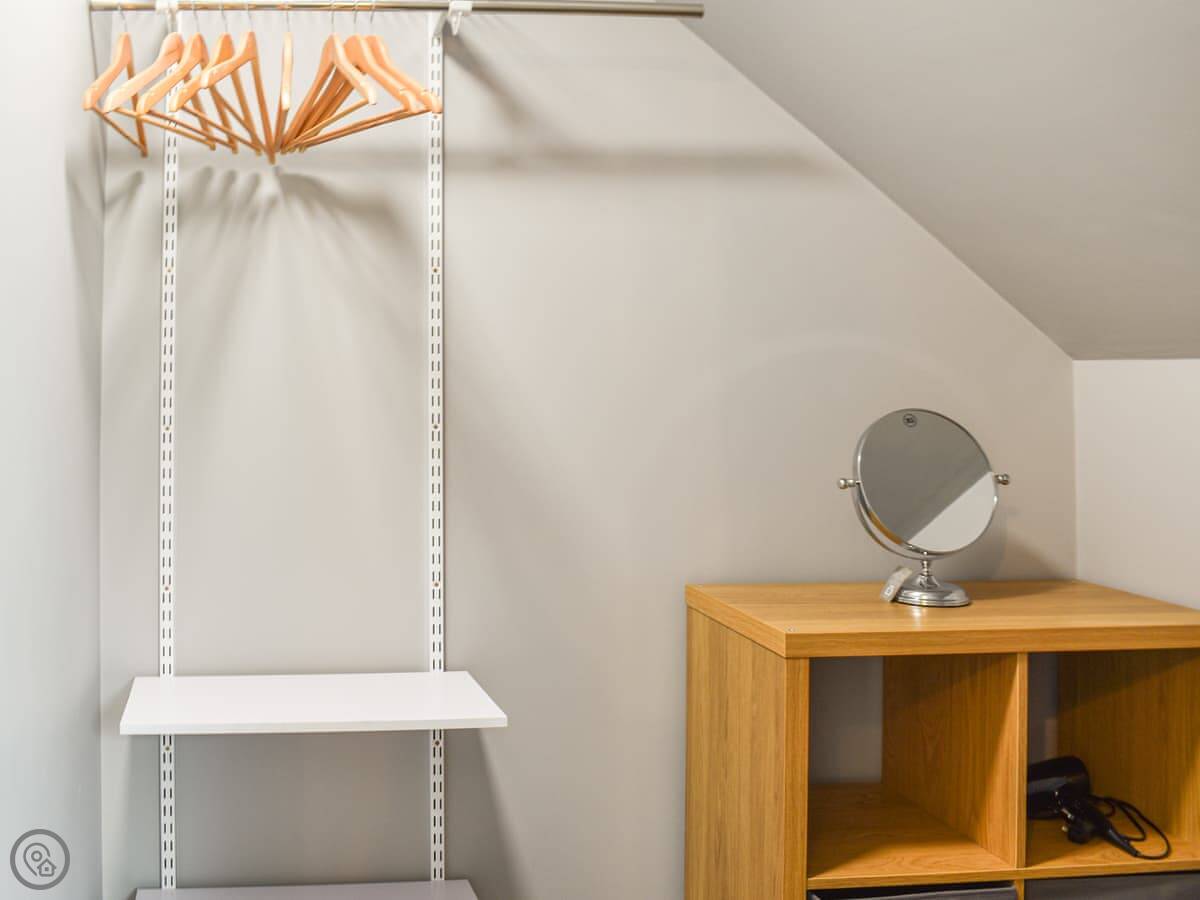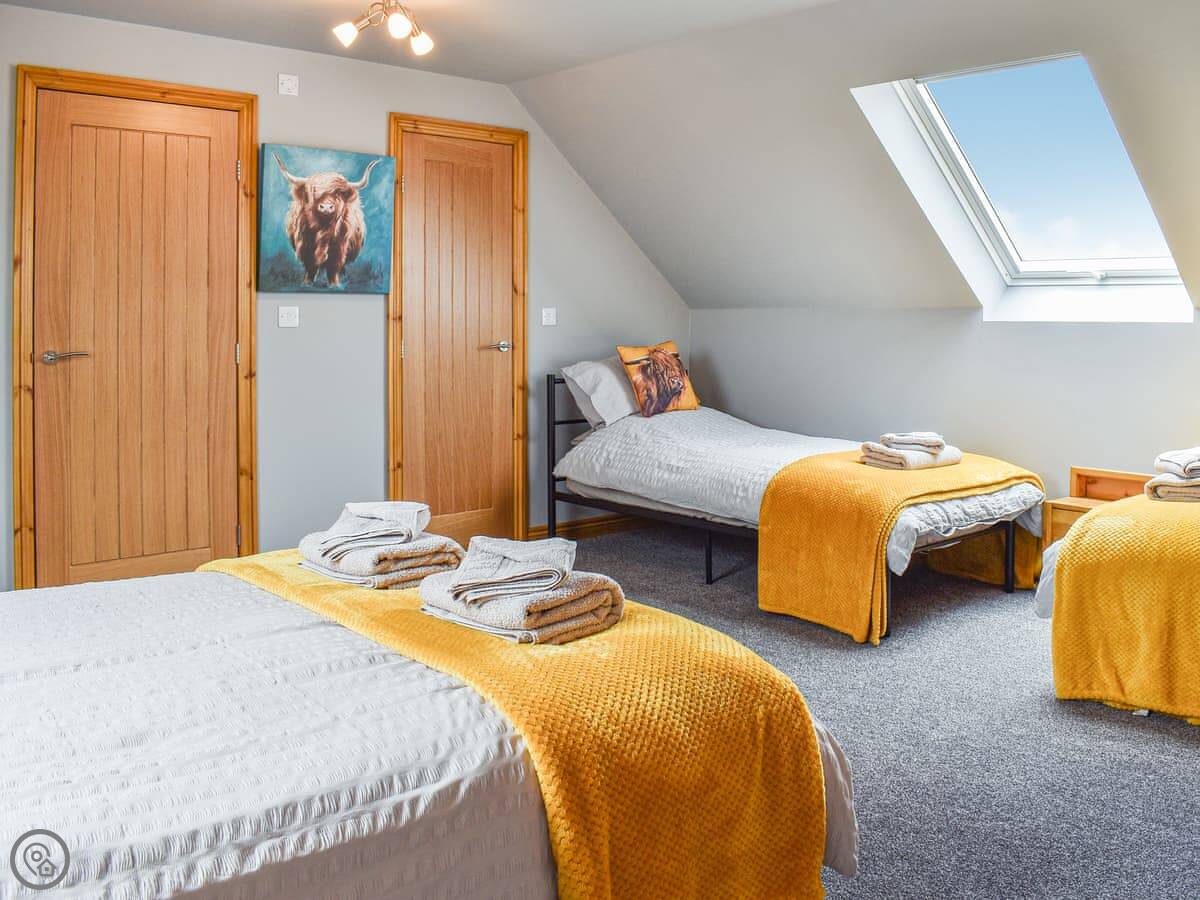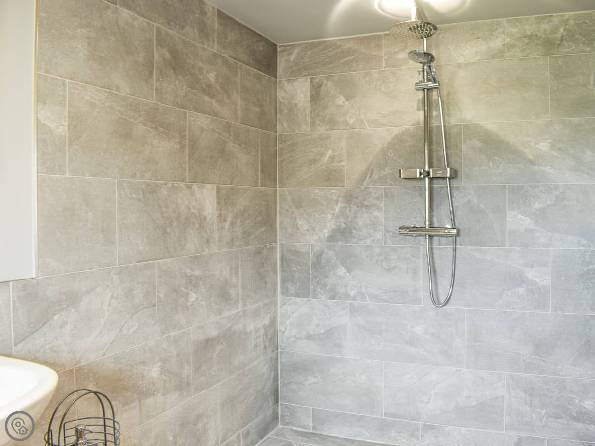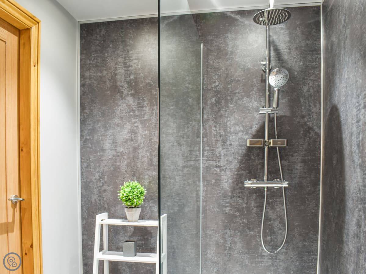 There are two bedrooms upstairs, both big family rooms with a double bed and two singles each. They both have en-suite shower rooms and walk-in wardrobes.