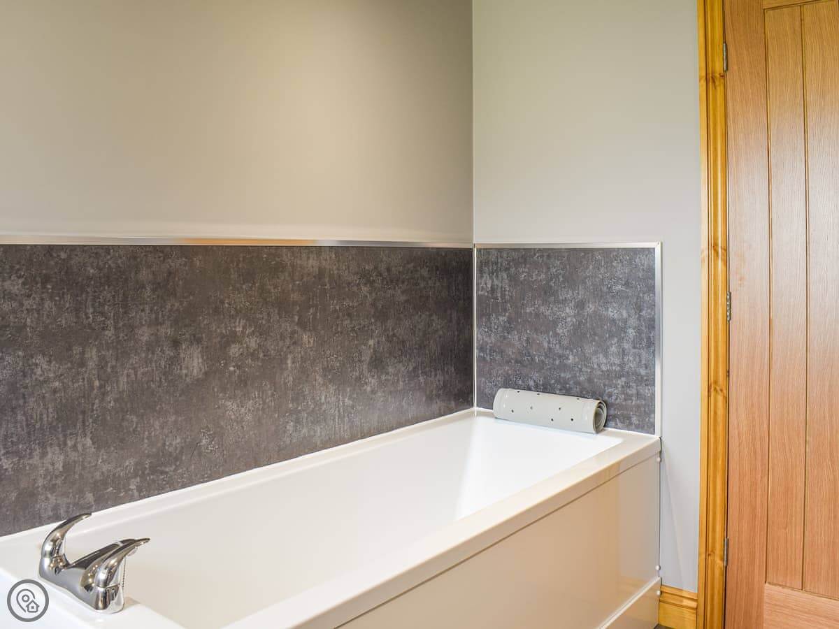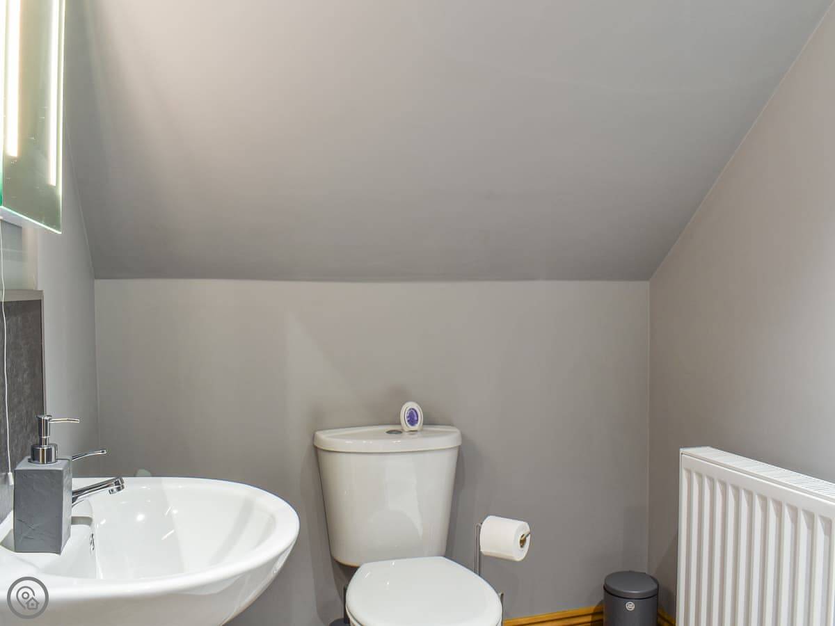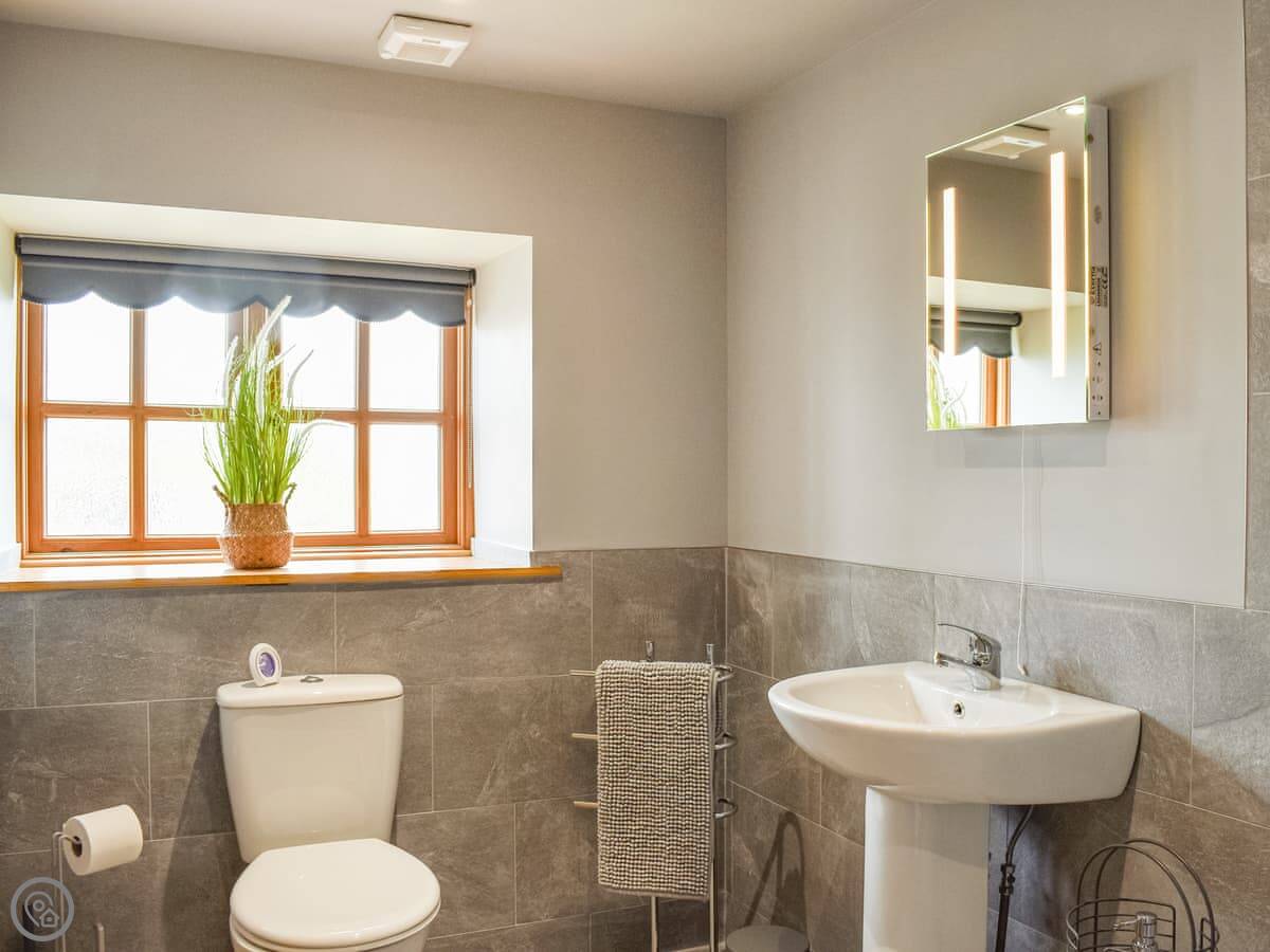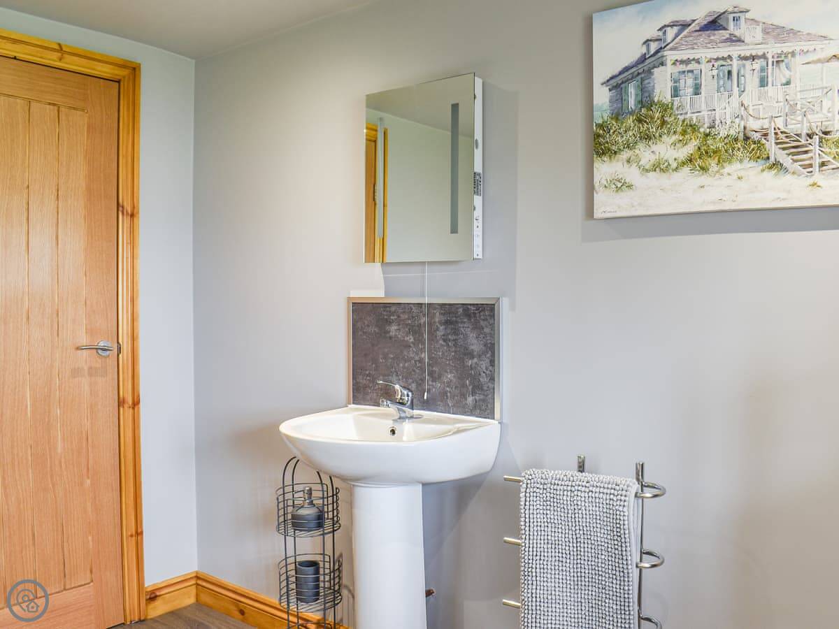 Downstairs there's a double bedroom designed for wheelchair access, with a level-access wet room ensuite. There's another family bathroom on the ground floor too, with a bath. So you've got four bathrooms in total.