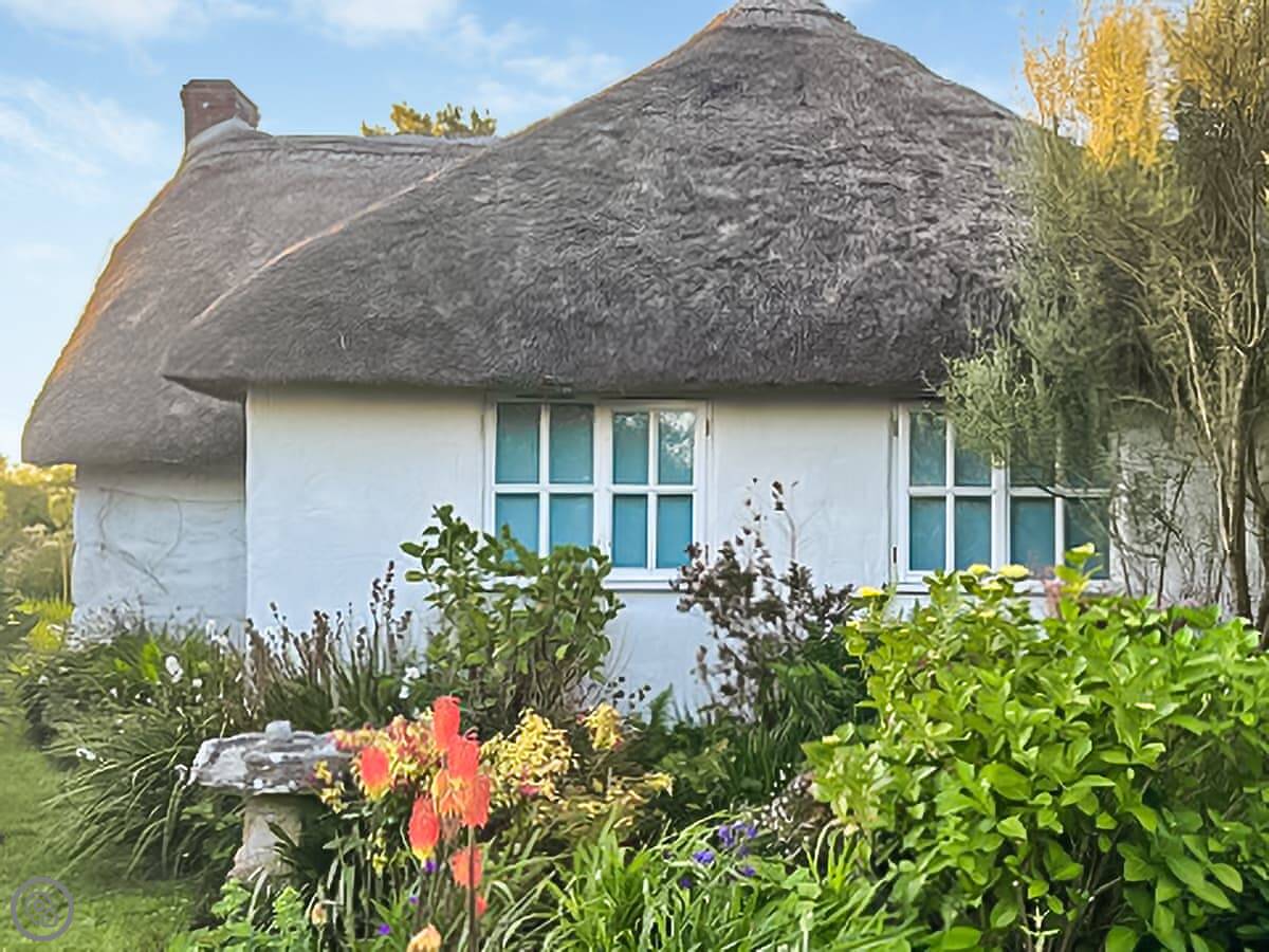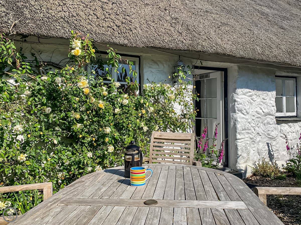 This is No Place, in Sennen Cove. It's a thatched cottage, detached. It's bloody old. We think it might be the most westerly thatched cottage in England. It's got three bedrooms and sleeps six.