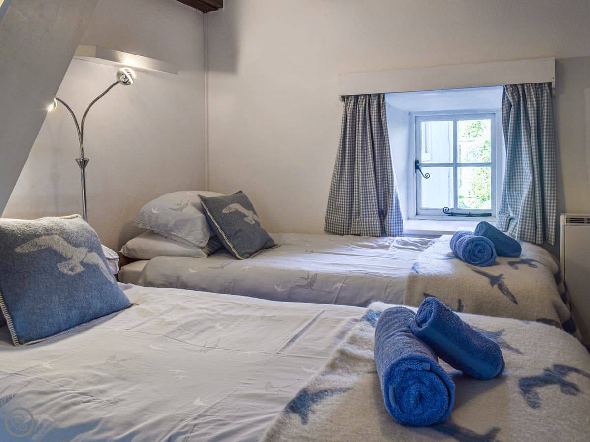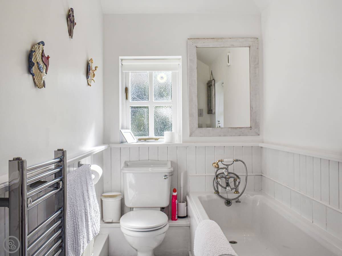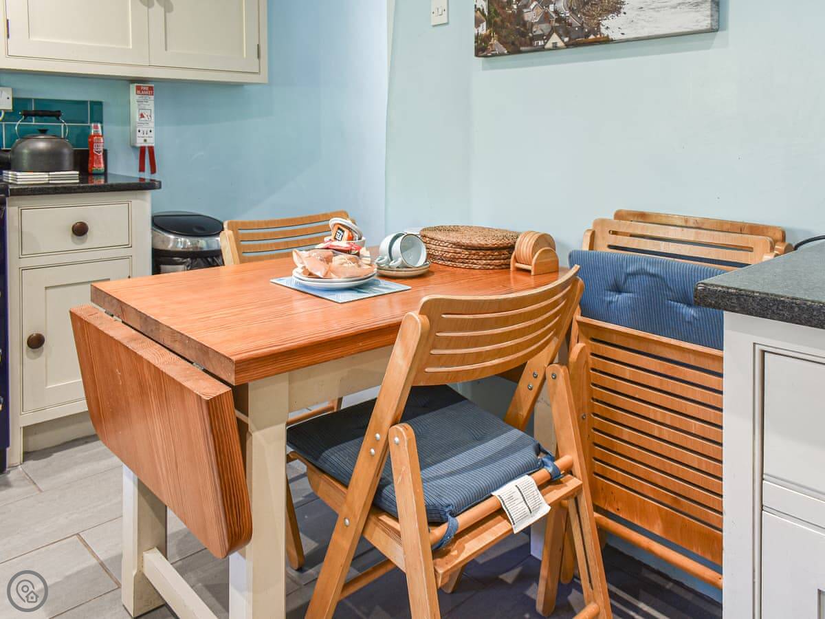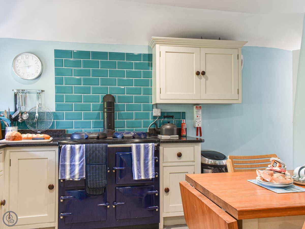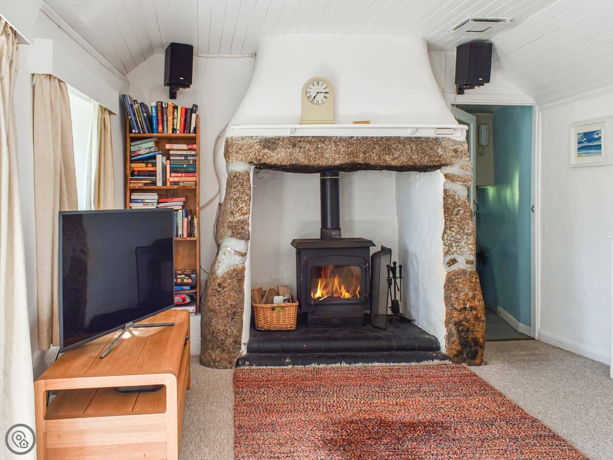 Inside, the ceilings are low because it's old. The stairs are proper cottage stairs, so they're steep and a bit narrow. There's a wood burner in the living room. It's got wi-fi, a TV, a washing machine, a dishwasher. Bedding and towels are included. We provide a cot and a highchair.