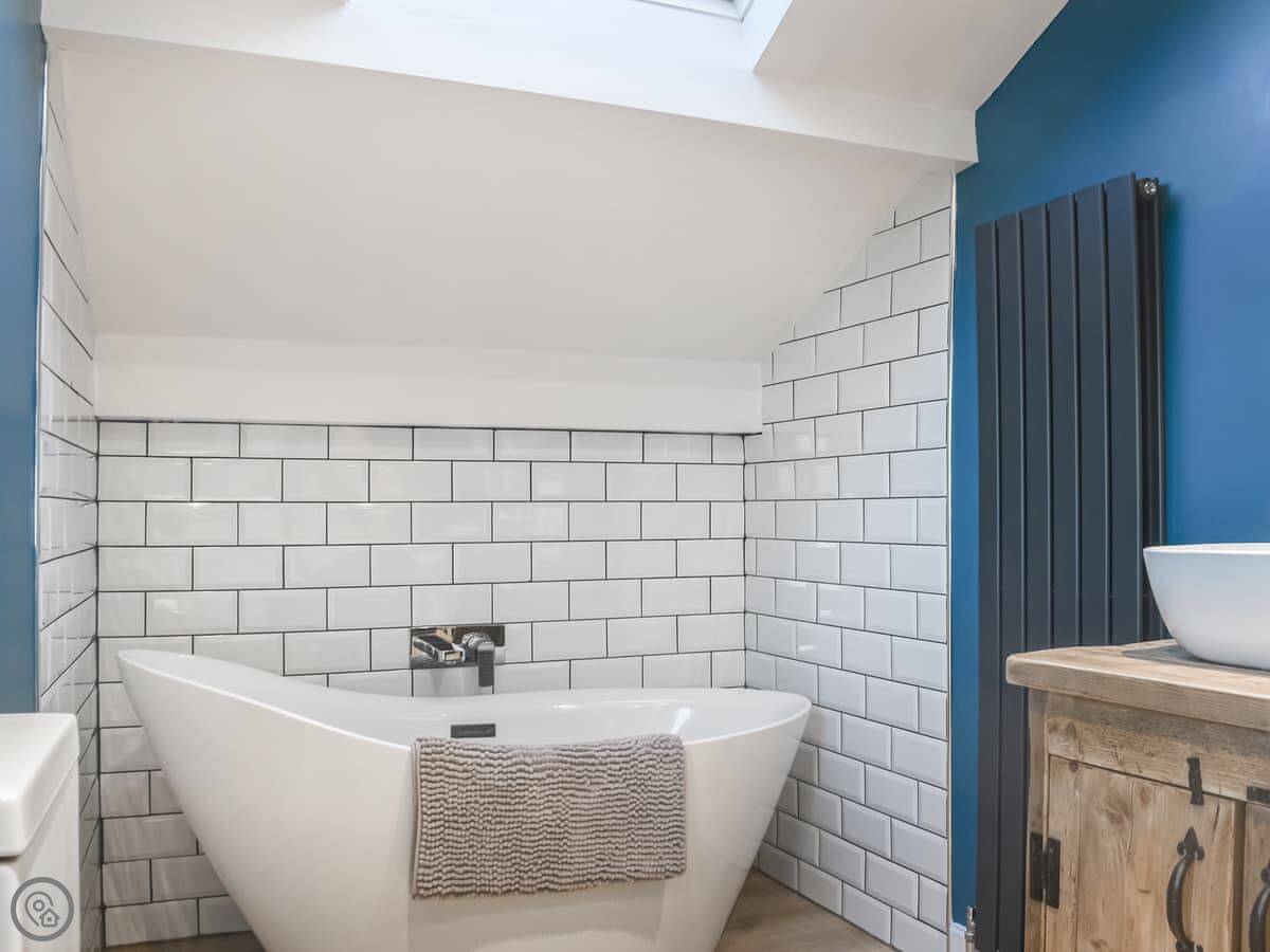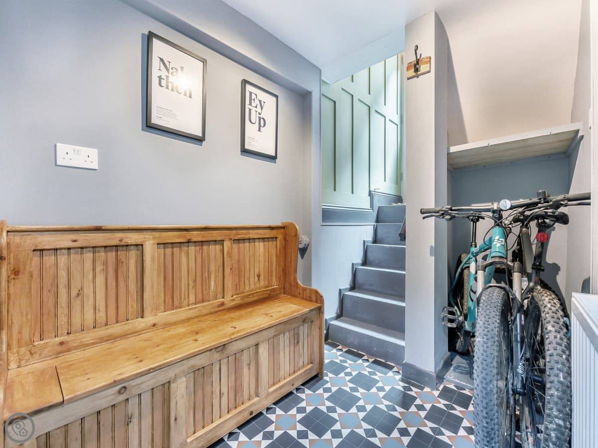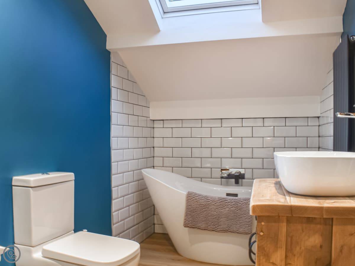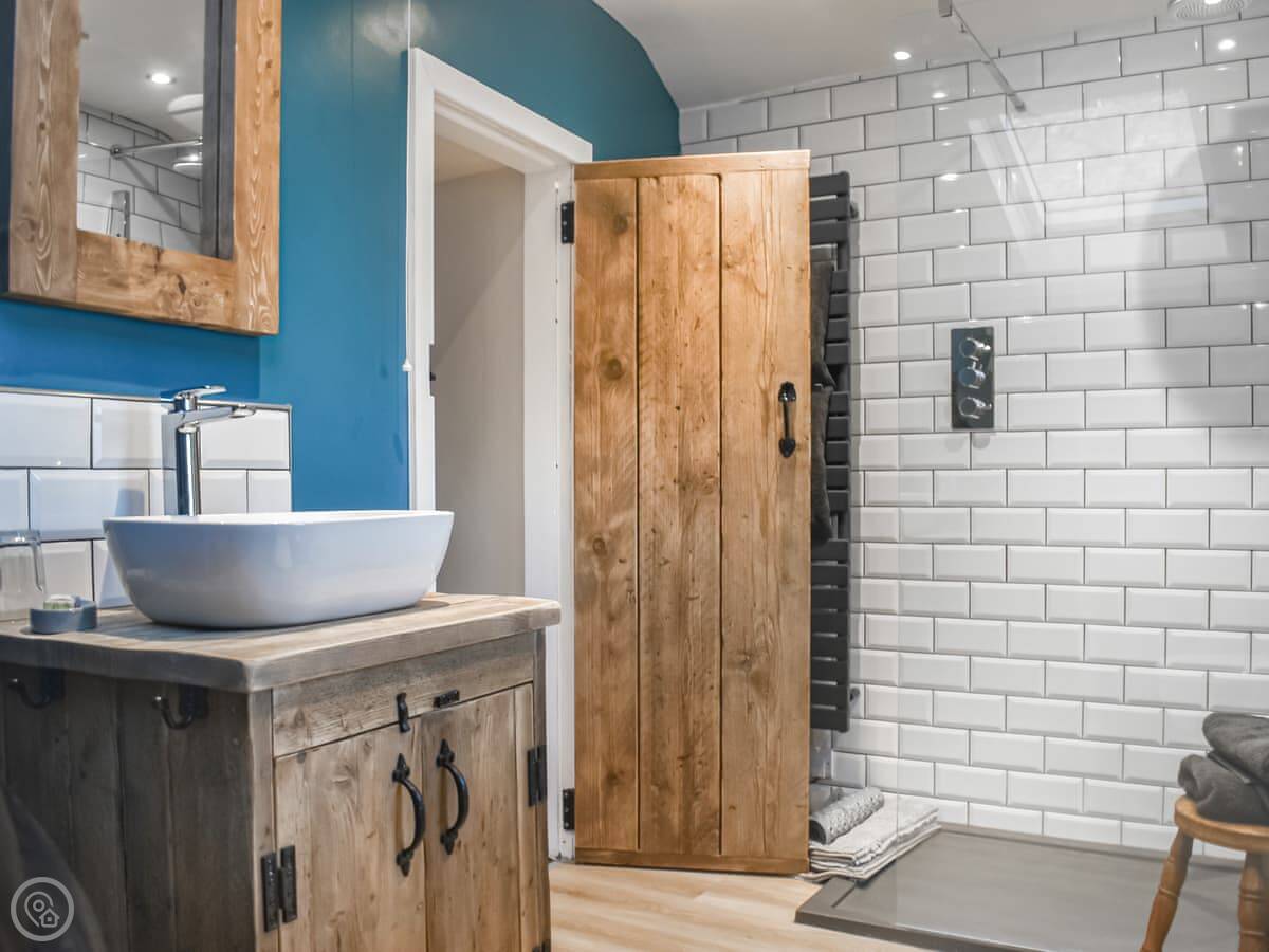 It's a 4 Star property. It's been done up nicely. The bedroom has a kingsize bed. The bathroom upstairs has both a shower and a freestanding bath. There's a wood burner in the lounge. The kitchen has a dishwasher and washing machine. There's a separate little boot room by the back door where you can leave muddy boots or store a couple of bikes.