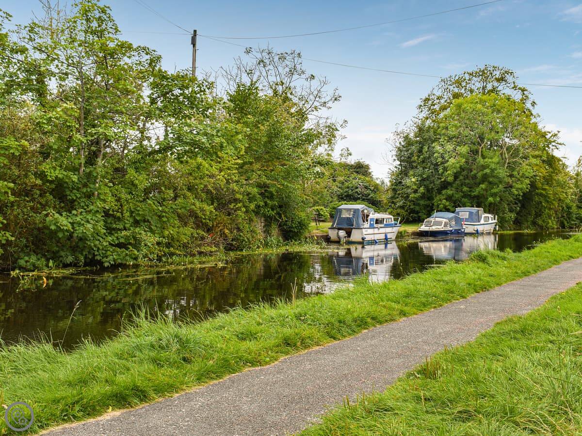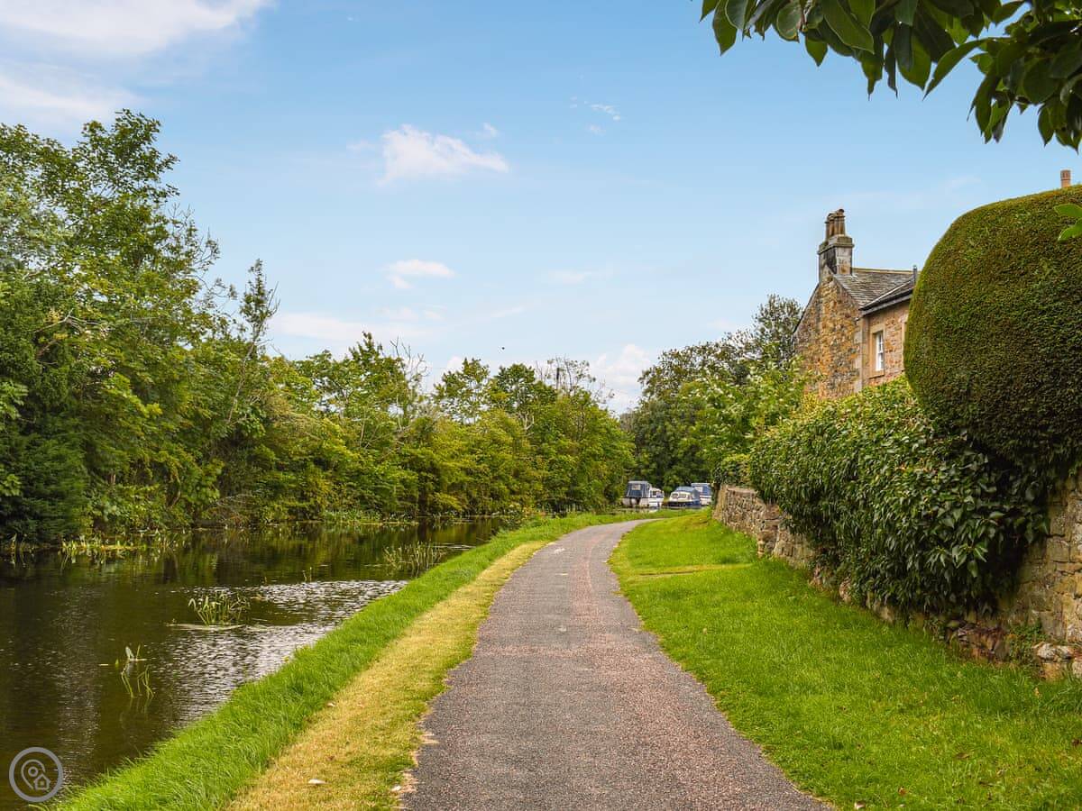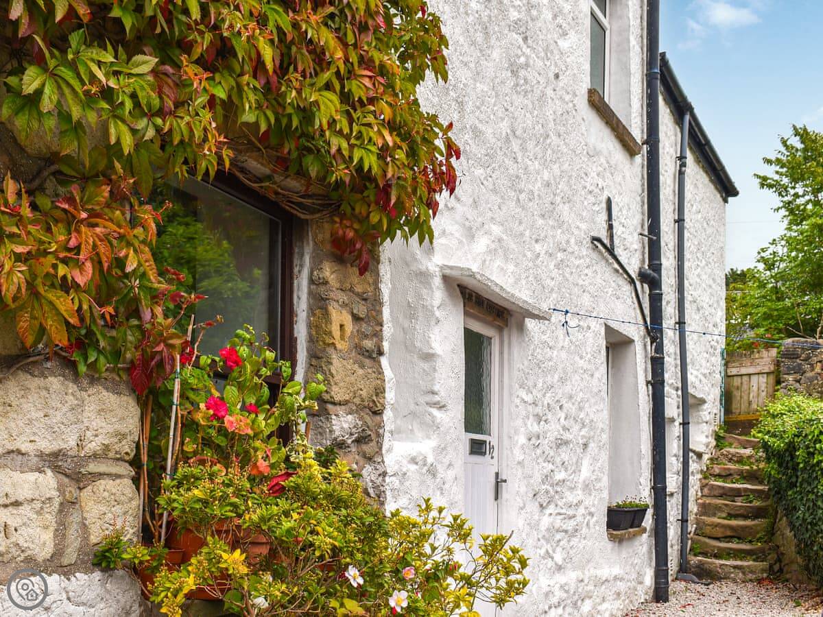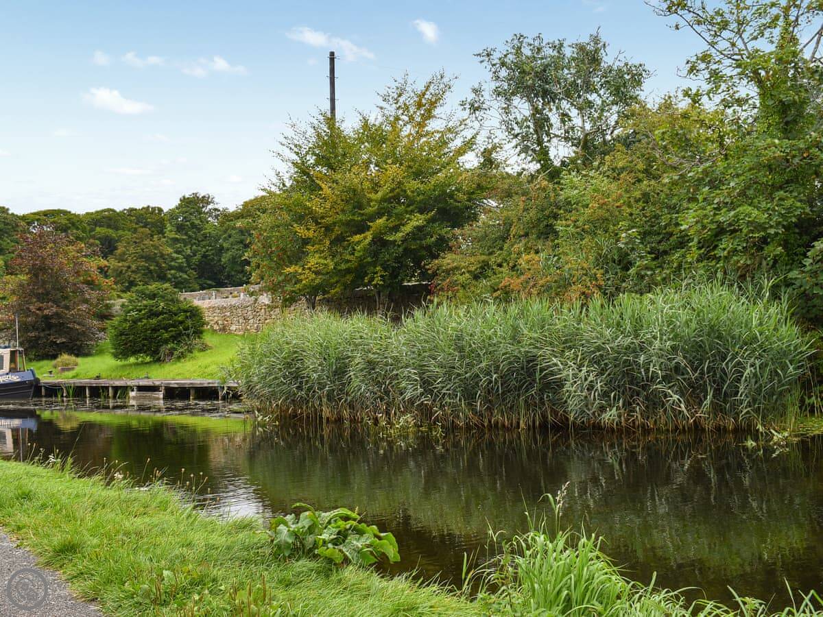 Kiln Cottage is on the canal in Bolton le Sands. It's a semi-detached cottage, one of a pair, backing right onto the towpath. You get a small lawned area and some steps down to the water.