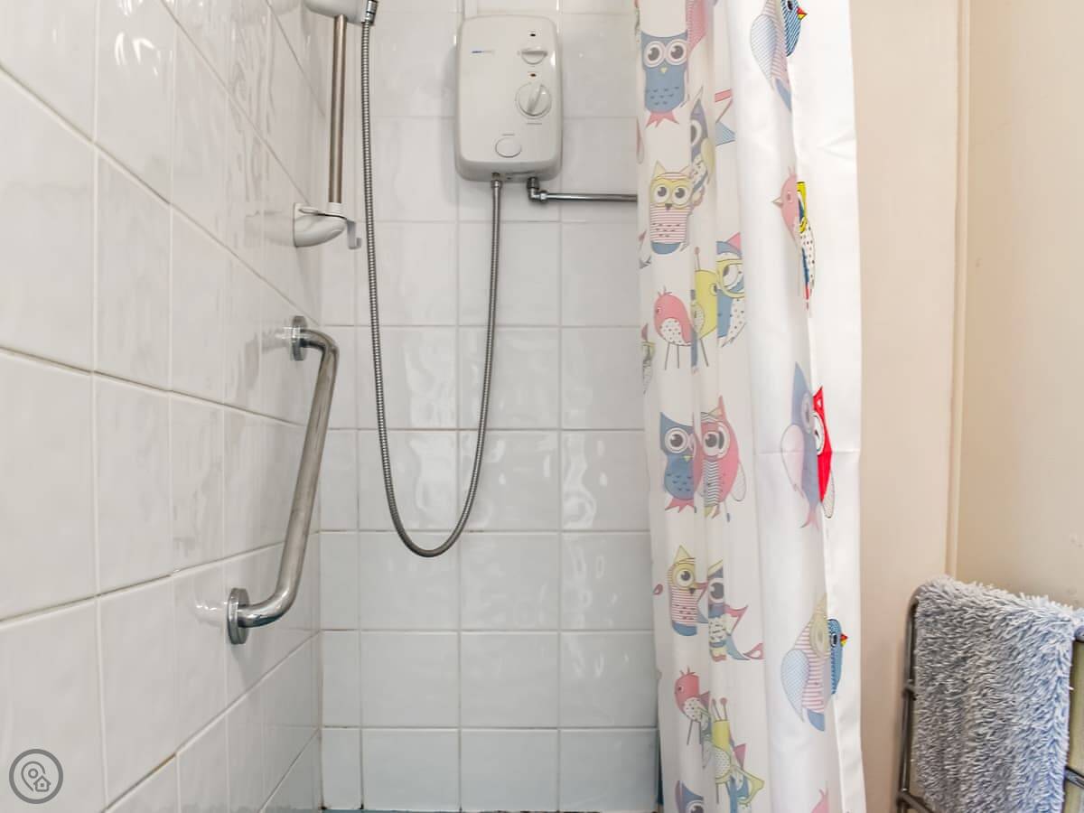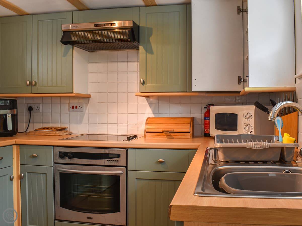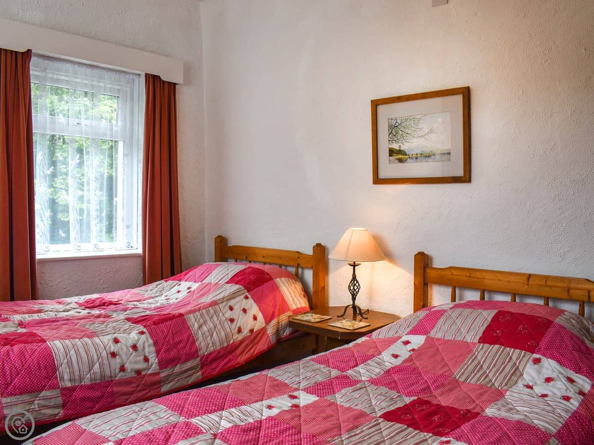 It sleeps four. Two bedrooms, one bathroom. It's got a 3 Star rating, so it's comfortable and clean. The kitchen is compact, on the first floor. There's also a toilet on that level.