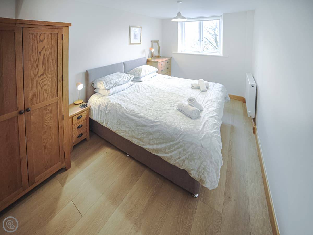 You get one bedroom with a double bed and a bathroom with a walk-in shower. The living area is open-plan, with the kitchen, dining and sitting room all in one space. It's got a 4 Star rating, which means it's well-equipped and comfortable.