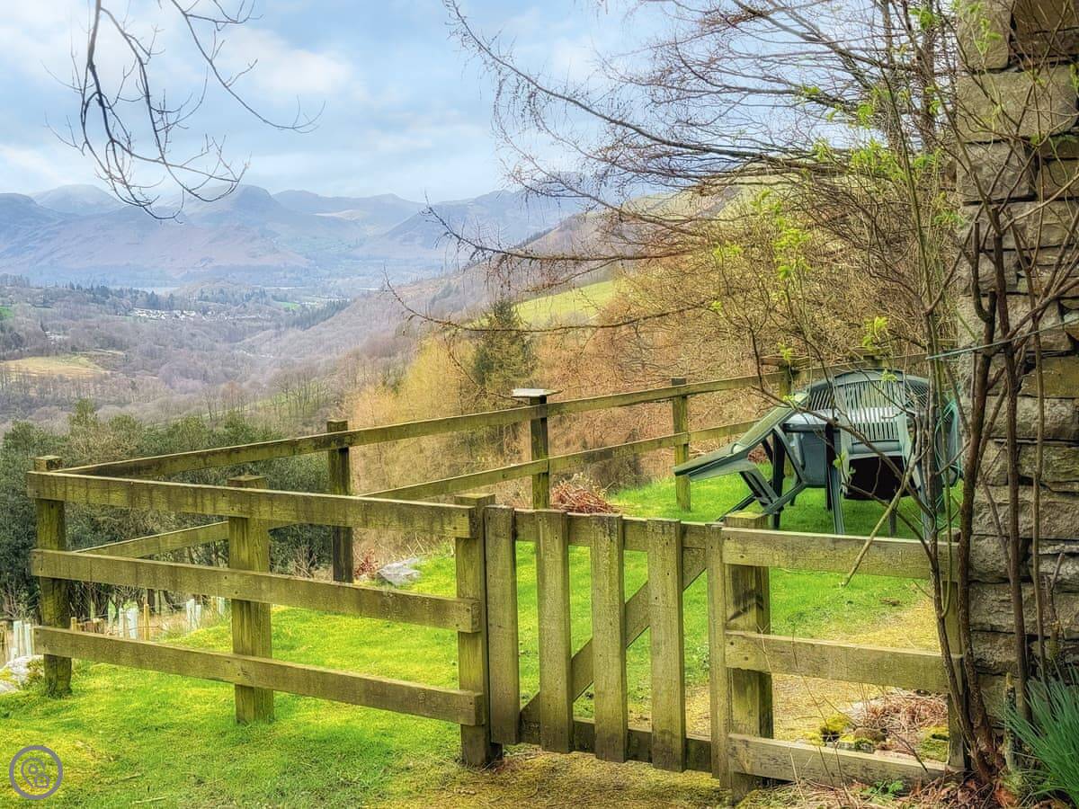 The front garden is yours. The view looks directly up at Latrigg. It’s a proper mountain view. There’s also a shared garden area with the other cottages on site. You can sit out there if you want.