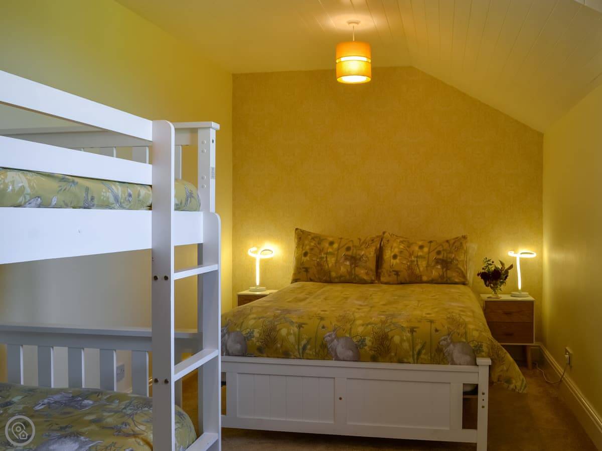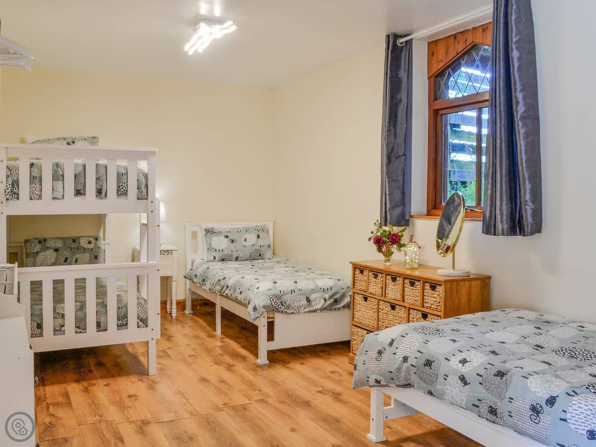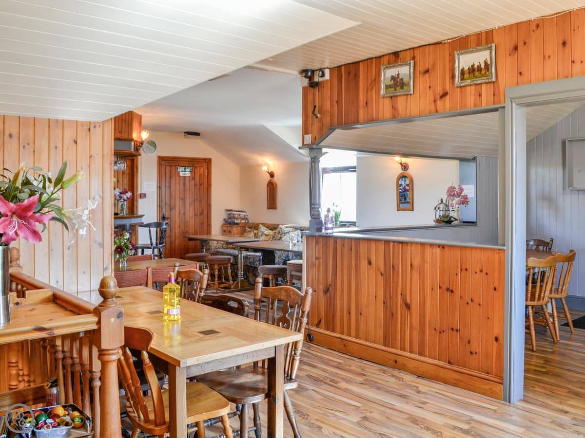 It's got a 3 Star rating. That means it's comfortable and clean, not luxurious. The facilities are what you need. There's a games room, a hot tub, and a garden with a BBQ. Bedding and towels are included. You can bring up to three dogs.