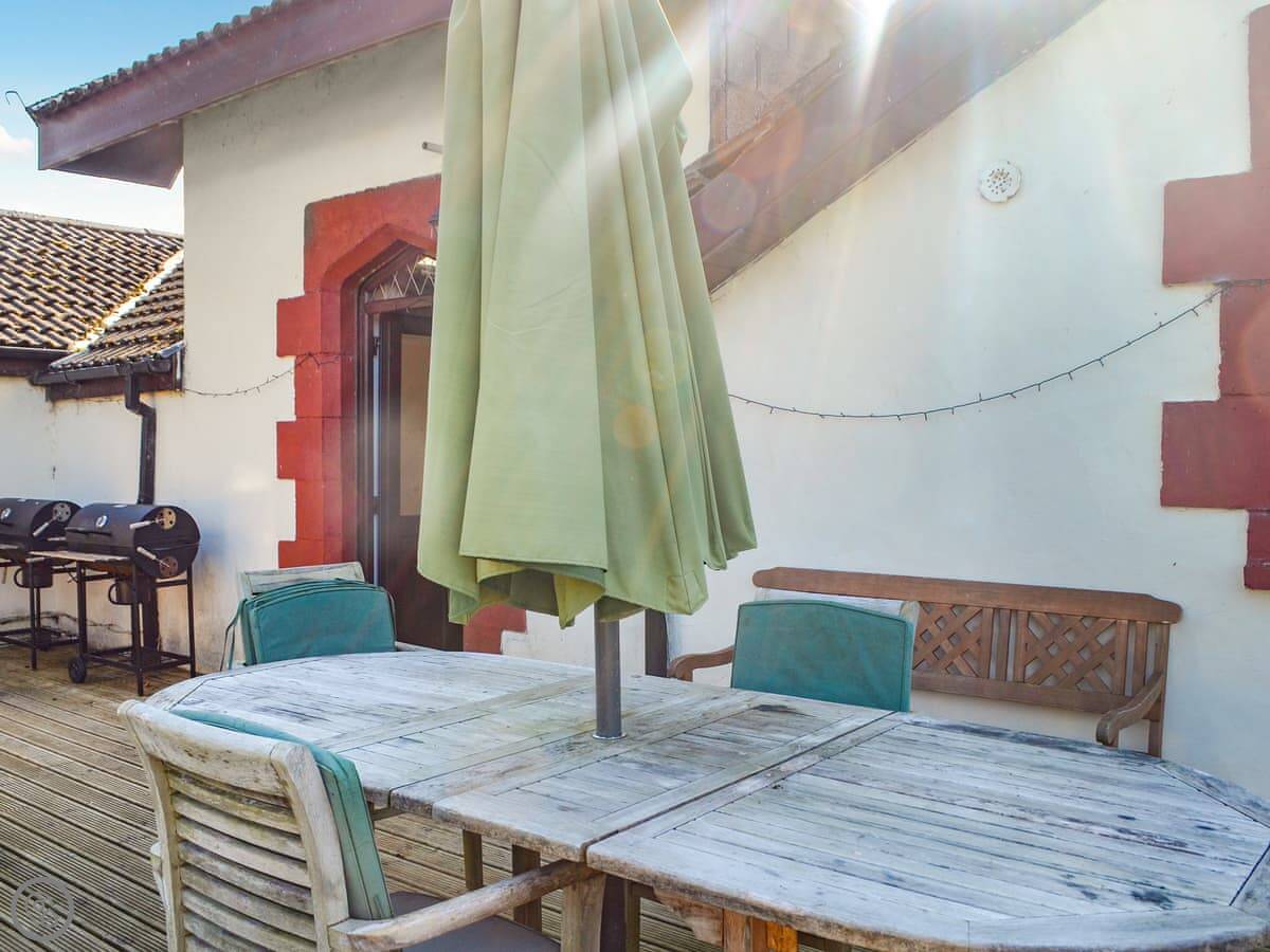 It's a big place for groups, sleeps sixteen. But it's made up of two separate apartments. So you can all be together but you've also got your own front doors and space. Good if a few families are sharing and want a bit of privacy. There are five bedrooms and four bathrooms between the two apartments.