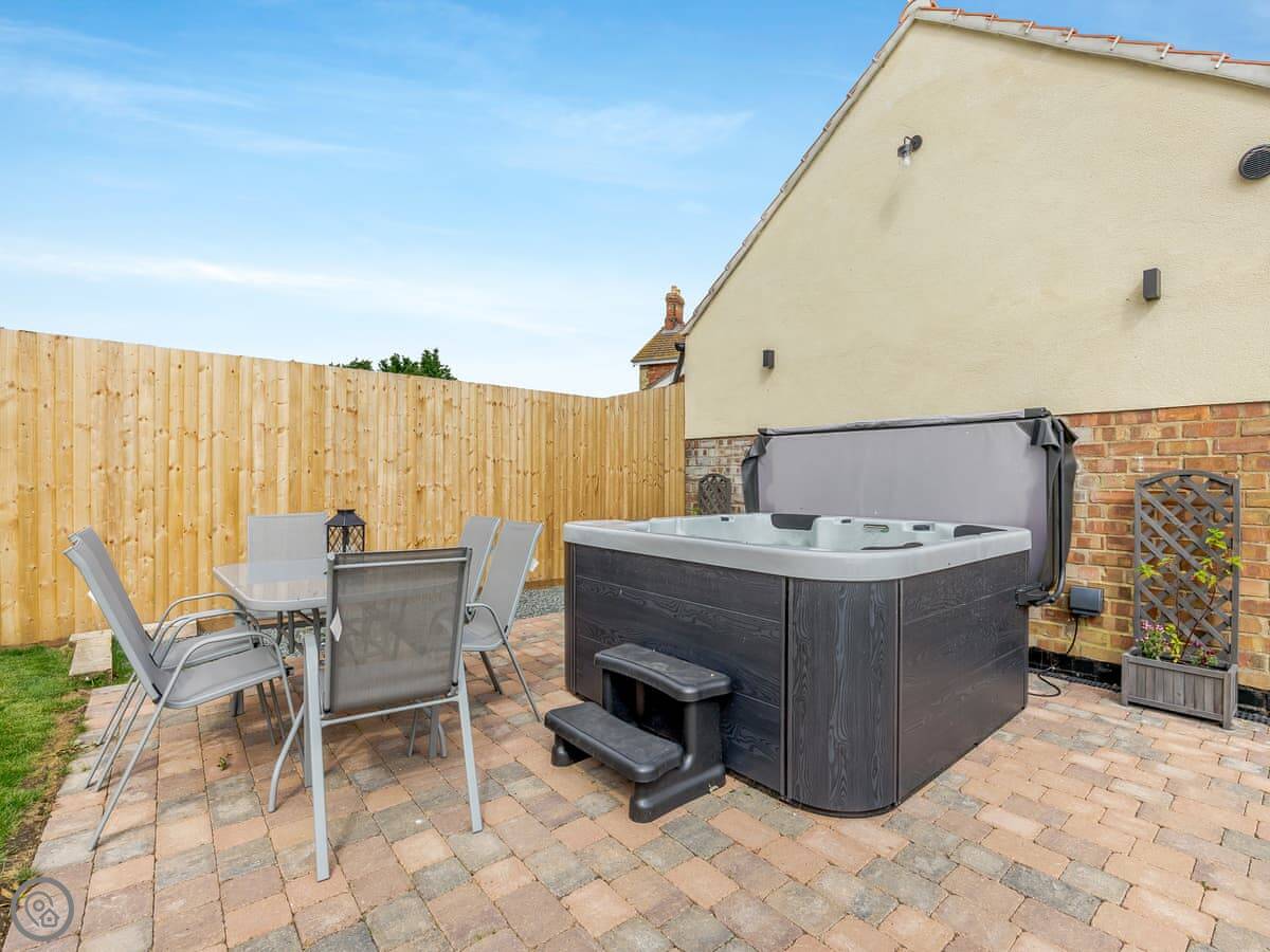 The Old Stables is a converted building on our working farm in Sloothby. It's detached and you get a private, enclosed garden with a gate. The hot tub is out there.