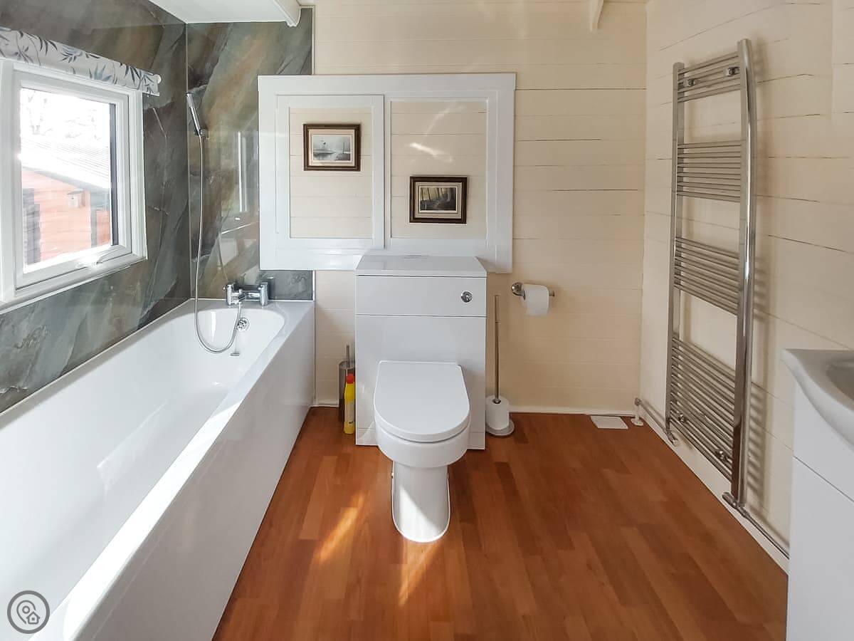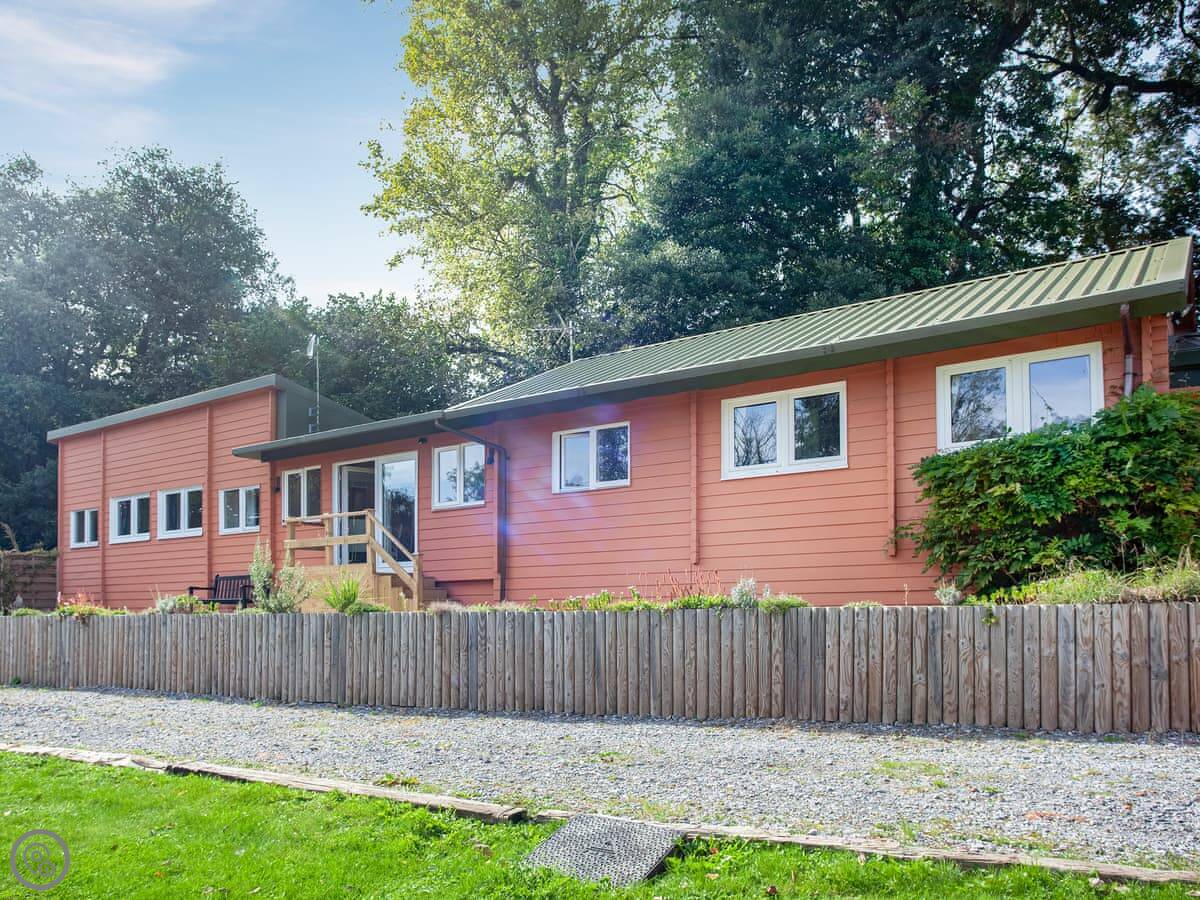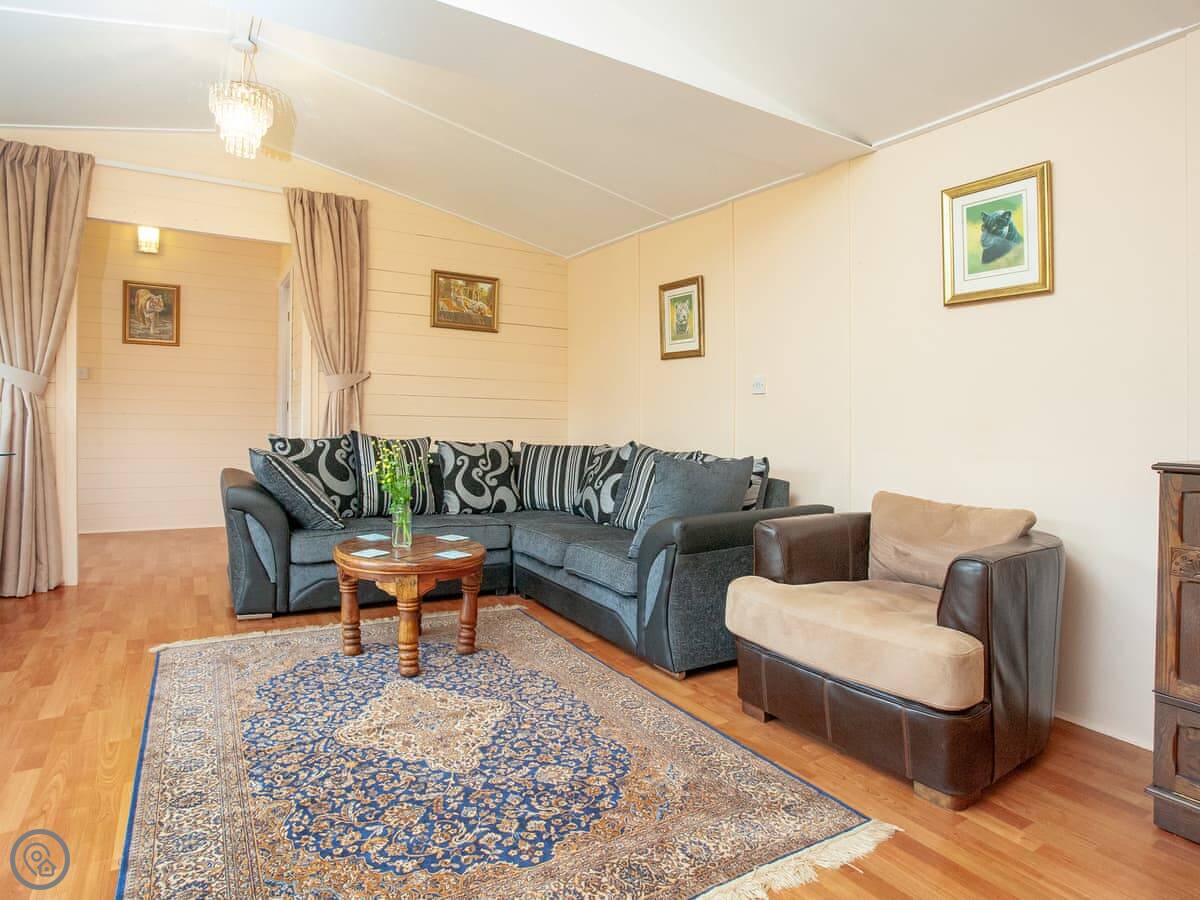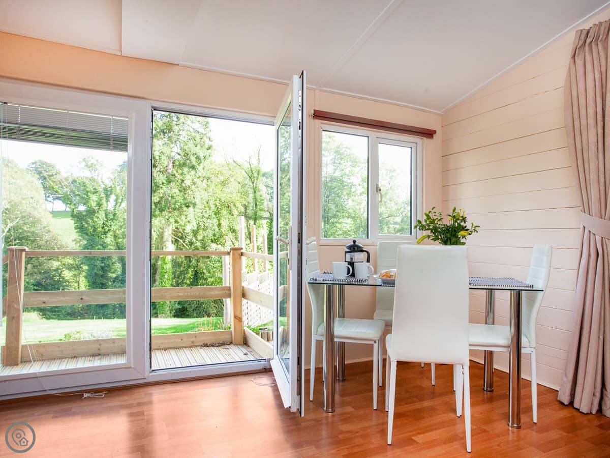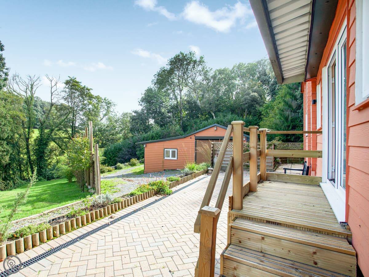 The lodge is on a gated, two-acre piece of land. You get a patio and garden area to yourselves with views over the fields. It's quiet. There's a footpath right outside the gate if you want to walk into the countryside.