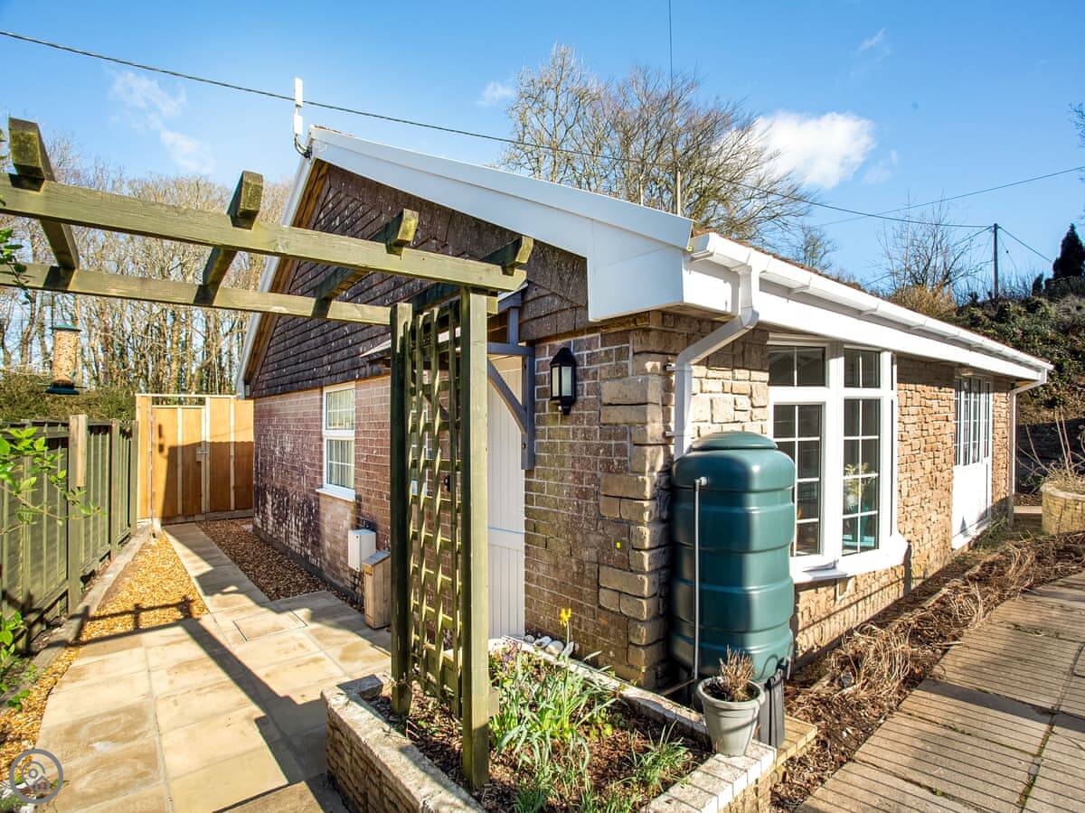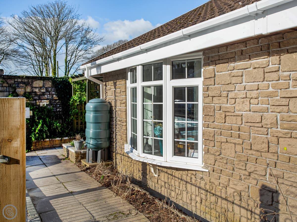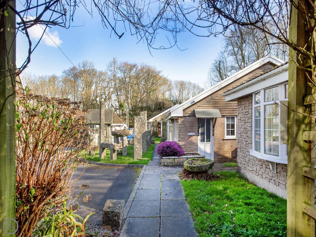 This is Deers Holt in Trelawne, Cornwall. It's a bungalow, so no stairs. It's semi-detached, next door to another cottage called Banks Voles Nest. You can rent them together if you're a bigger group.