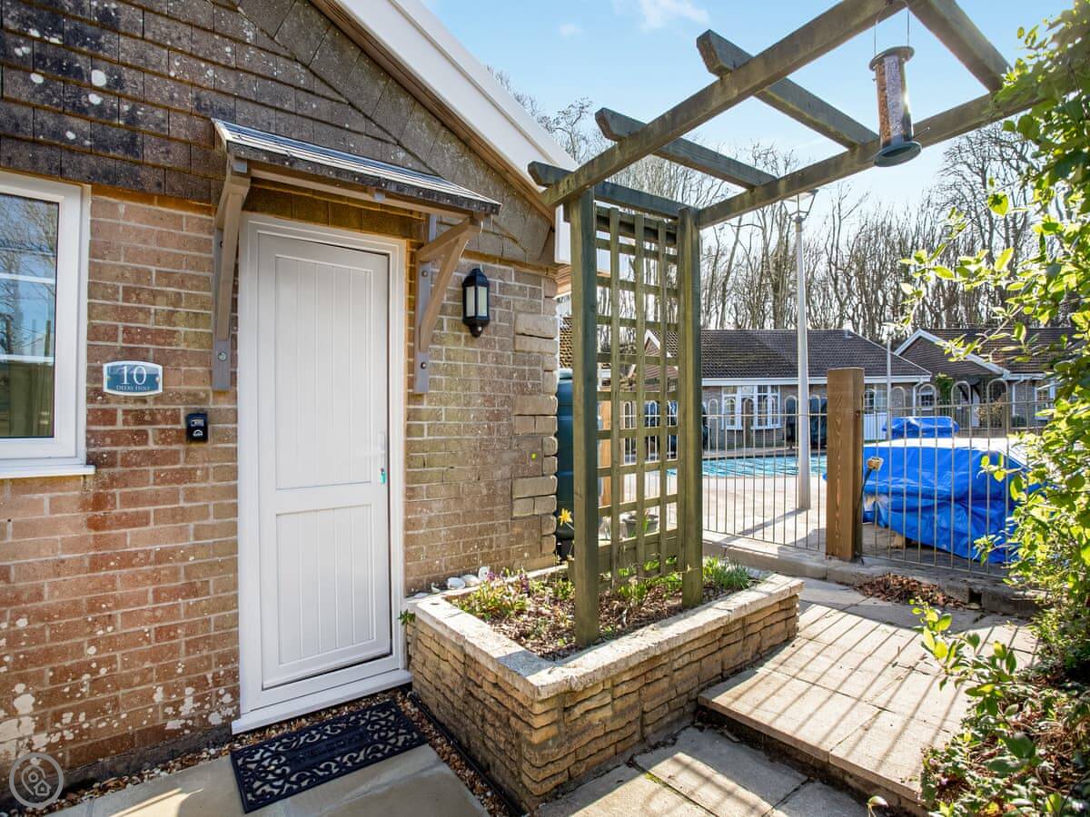 Outside, there's a patio and garden area. The main feature is the heated swimming pool on the complex, which you can use from May to September. It's not supervised, so kids under 16 need watching. Children under four and a half aren't allowed in the pool due to the insurance.