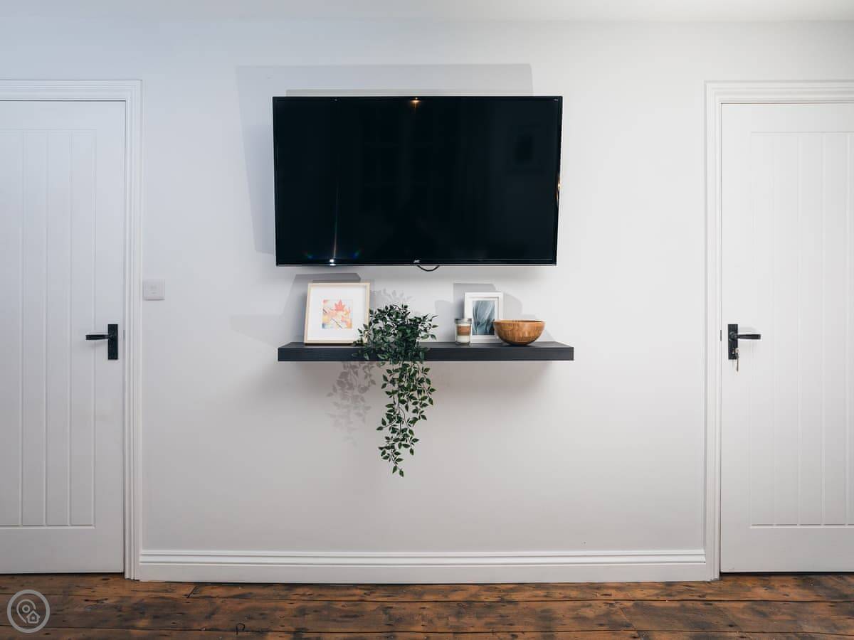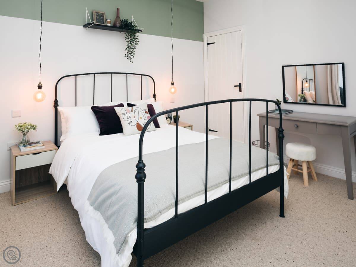 It sleeps four in two double bedrooms. One bathroom with a shower over the bath. It's a 4 Star place, so it's comfortable and has everything you need. The stairs are a typical cottage style, so they turn a corner and are a bit steeper than in a modern house.