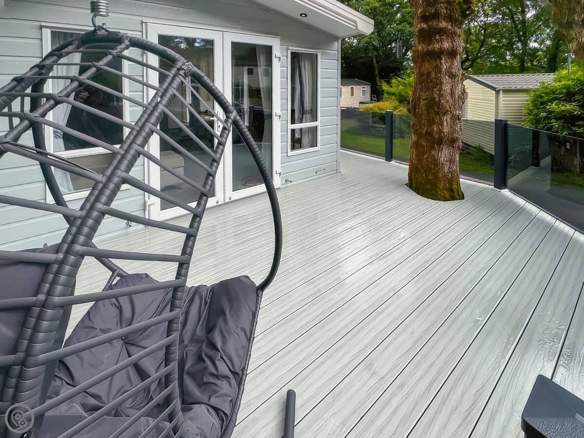 It's detached with its own patio area and garden furniture. You can sit out there. Parking is right next to it.