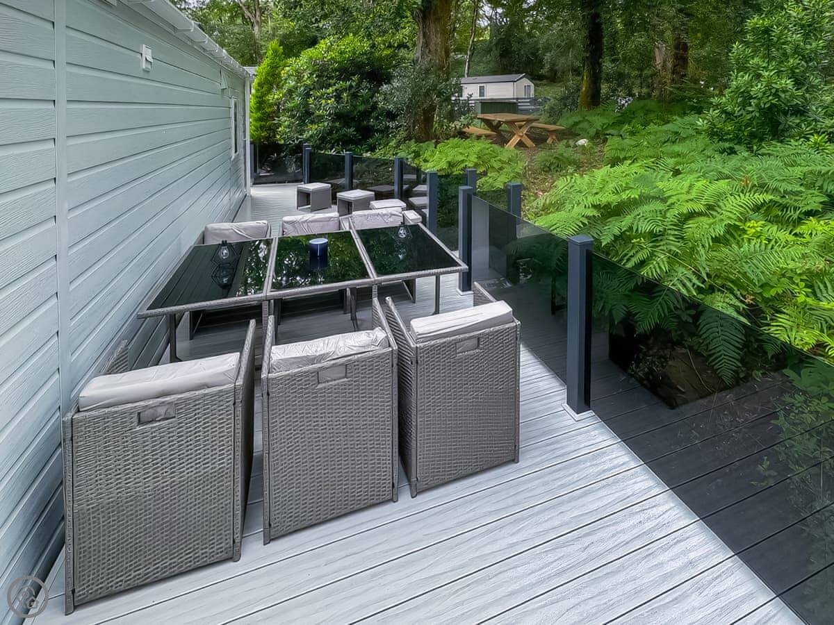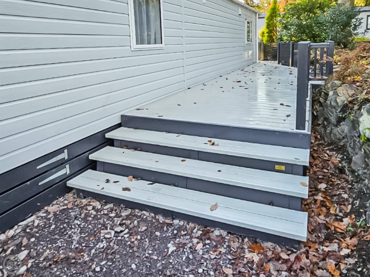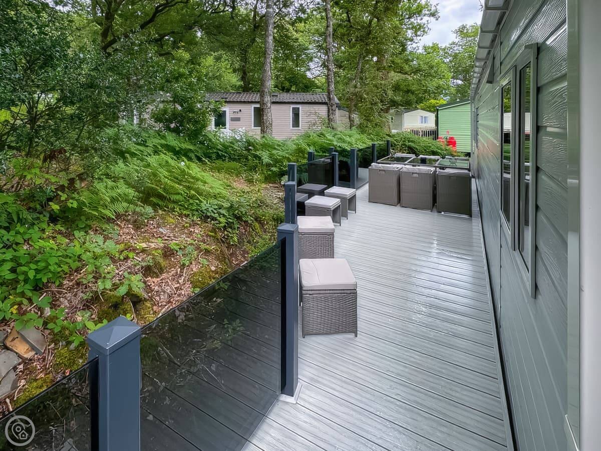 Oaks Retreat is in Prenteg, near Porthmadog. It's a static caravan on Aberdunant Hall Park. It's well kept and feels private.