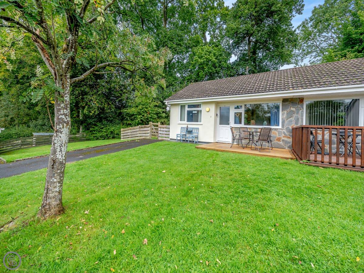 This is No 3, a bungalow in Ciliau Aeron. It's a quiet spot outside Lampeter, on a row with a few other houses. The place is yours, front and back.