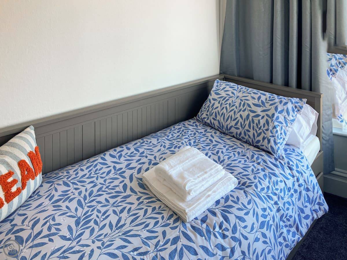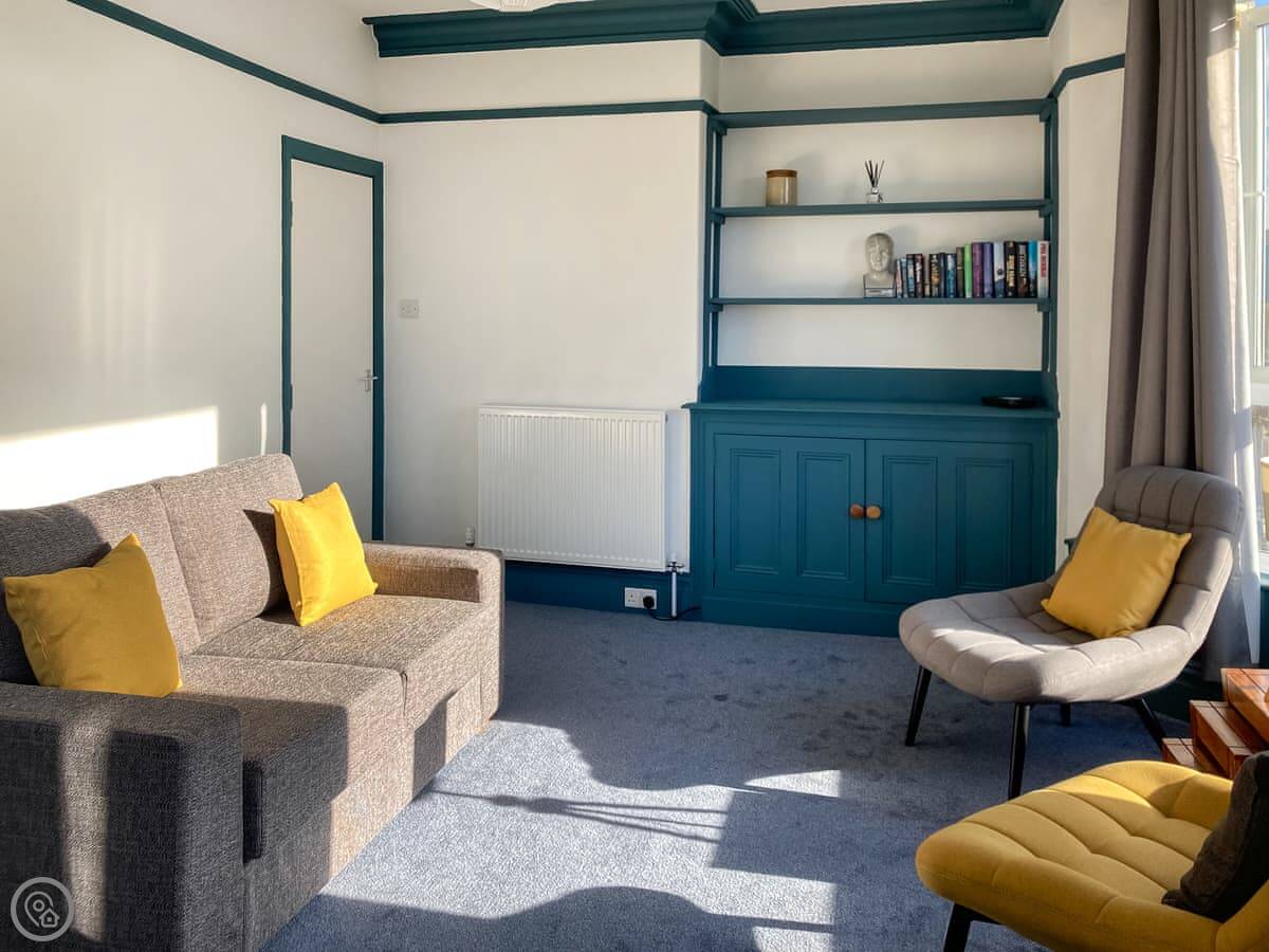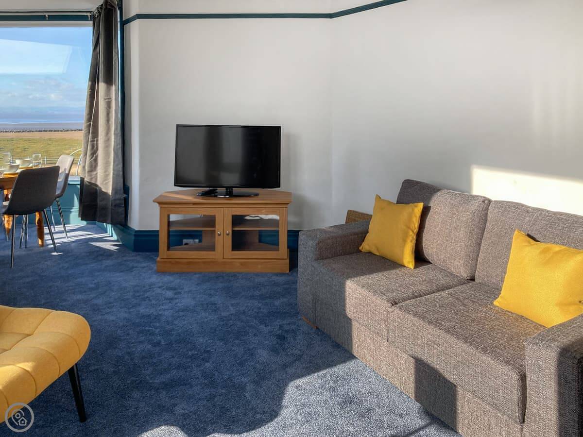 The main thing about it is the view. The living room and the front bedroom look straight out over Morecambe Bay. You get a full panorama from the bay window, right across to the Lake District fells in the distance. The sunsets from there are very good.