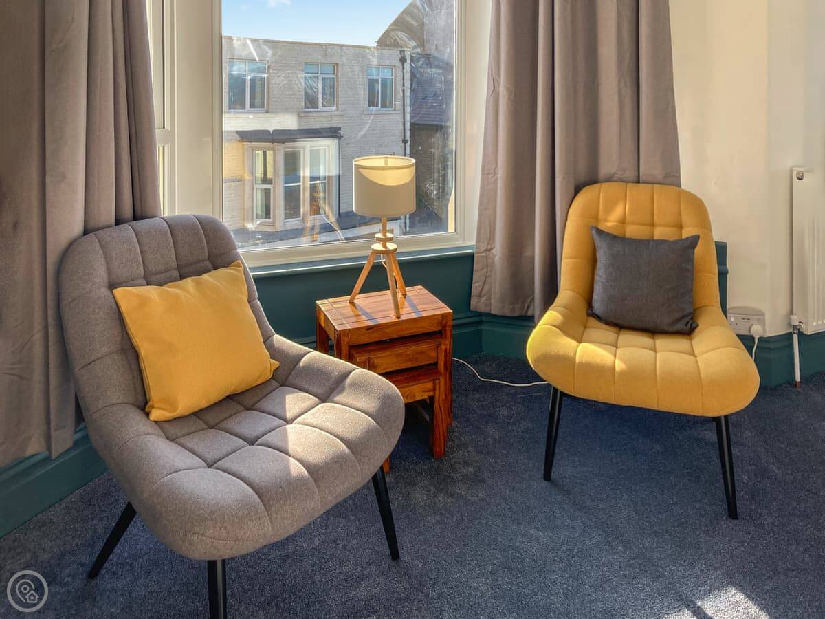 Blue Sands is in Morecambe, on the seafront. It's on the second floor, so there's a flight of internal shared stairs to get up to it.