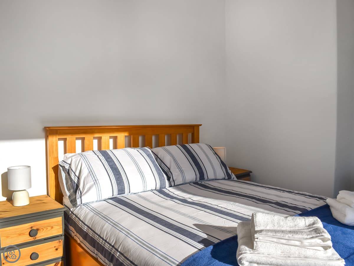 Inside, it's straightforward. There's a living and dining area, a decently equipped kitchen, and a shower room. The double bedroom is at the back and is a good size.