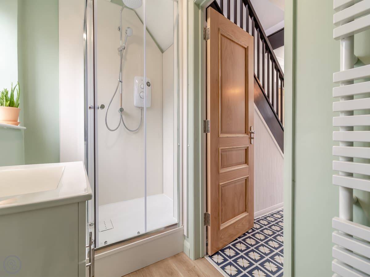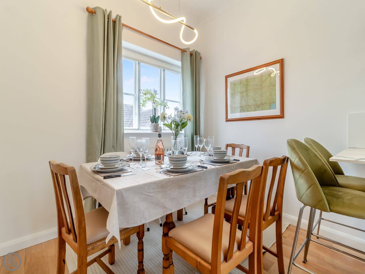 It's been done up, so it's in good condition. It sleeps six. There are three bedrooms and two bathrooms, which helps. One bedroom and a shower room are on the ground floor. The main living area is on the first floor, which some people find unusual. It means the kitchen and the sitting room get a nice view over the garden and the rooftops. The other two bedrooms are on the top floor.