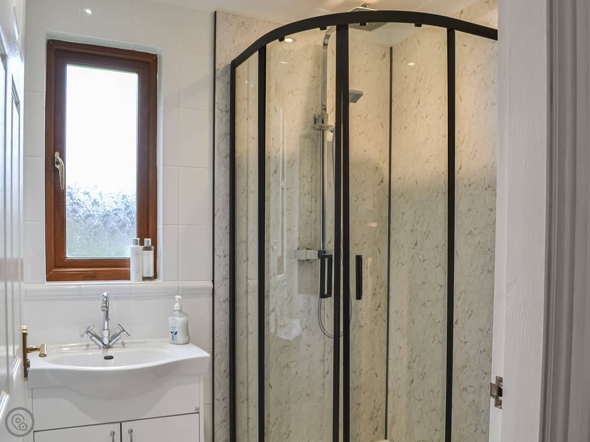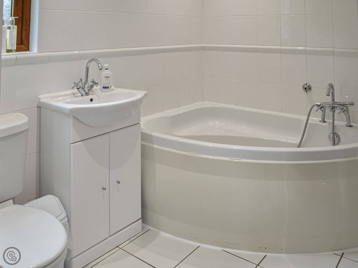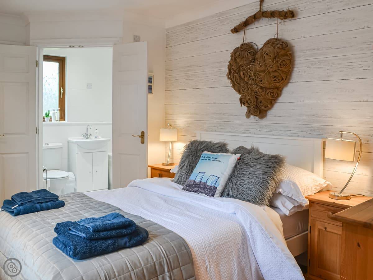 It sleeps five, in two bedrooms. Both bedrooms have their own bathrooms, which is handy. It's got a 4 Star rating, so everything is in good order. All on one floor. Good for buggies or if stairs are a problem.