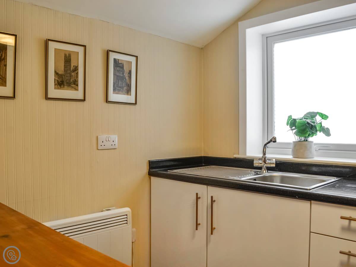 For facilities, you've got the wood burner, a dishwasher, WiFi, TV, washing machine, and bedding and towels are included. There's parking for one car at the rear of the building.