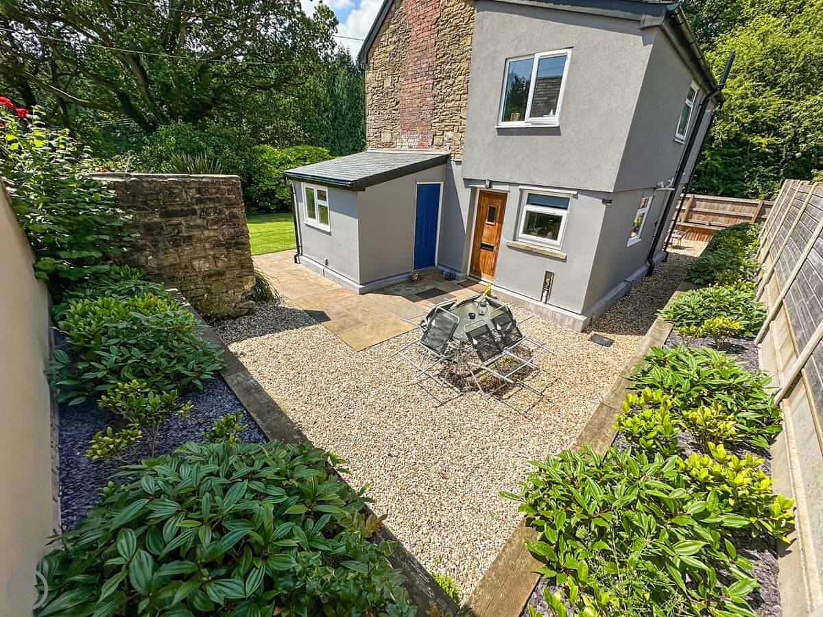 Holly Cottage is in Ellwood, in the Forest of Dean. It’s detached, so you won’t have neighbours through the walls. You get a decent enclosed garden. It’s mainly lawn, with a couple of patio areas.