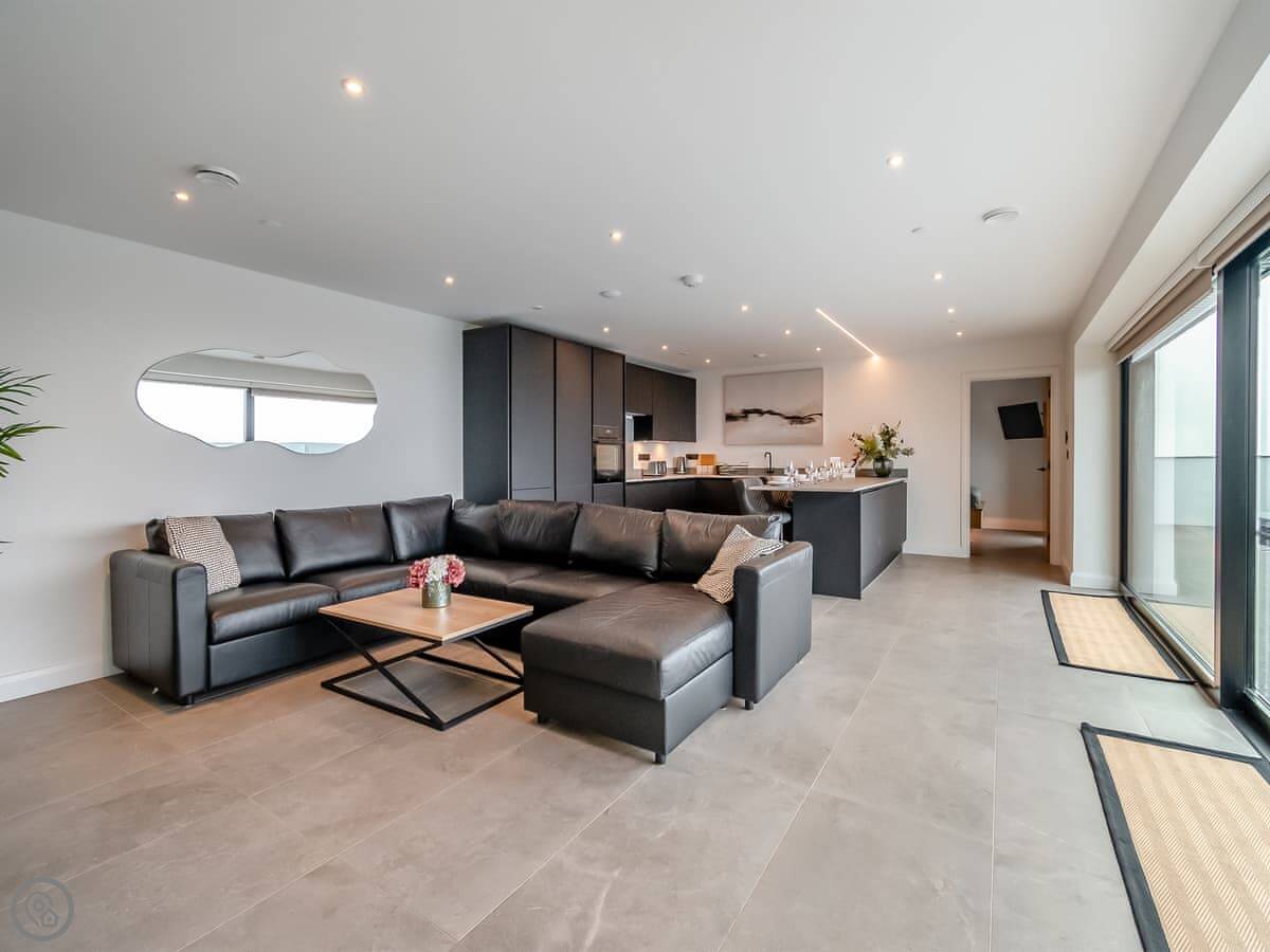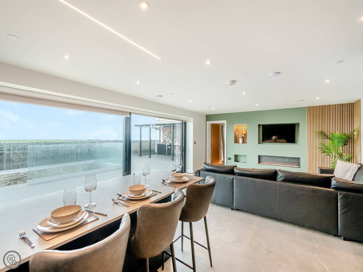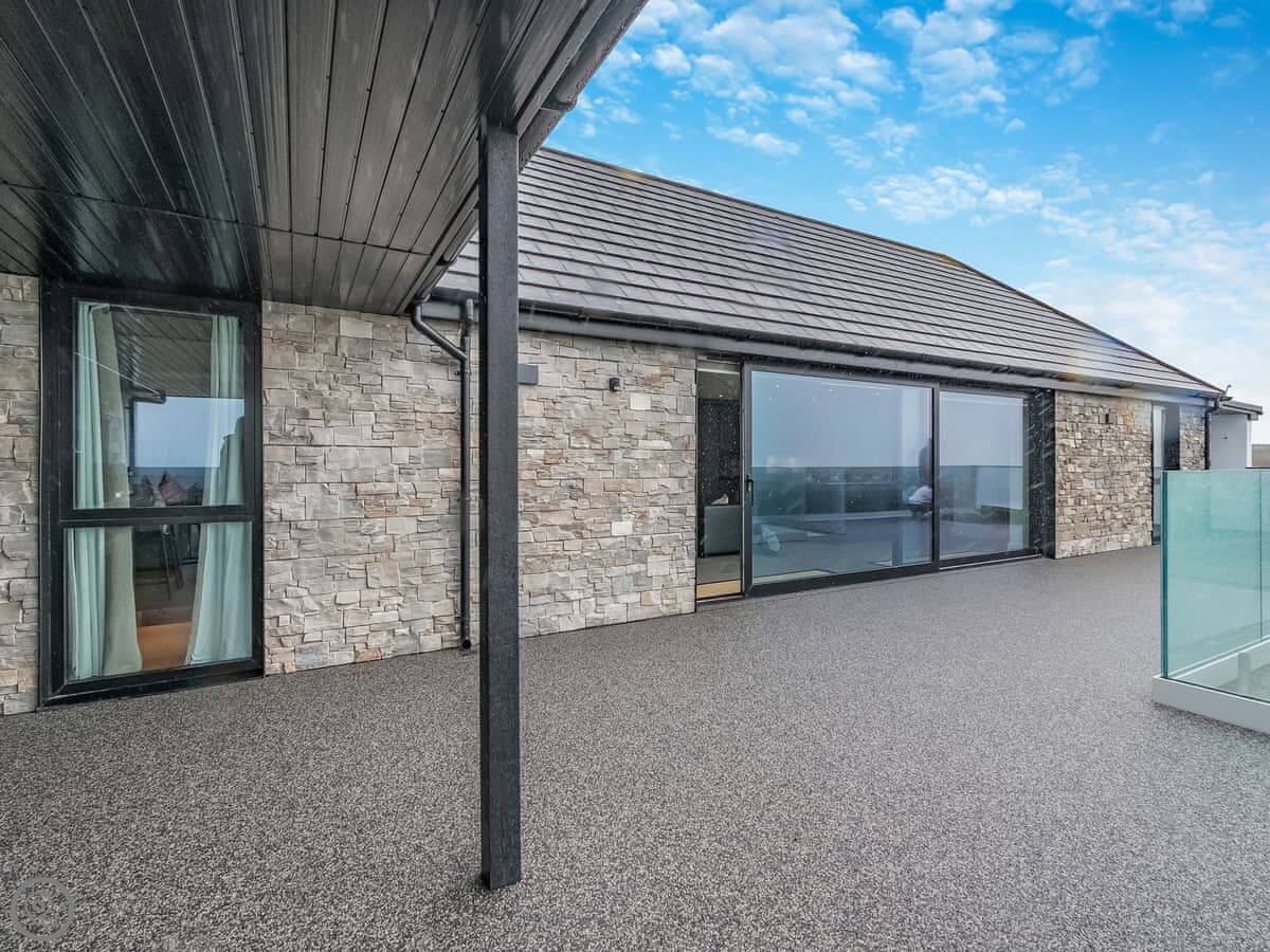 It’s a 5 Star property, sleeps four with two bedrooms. Both are king size beds and both have their own ensuite wet room. Everything is on one level. The main living area has big patio doors that open onto a terrace.
