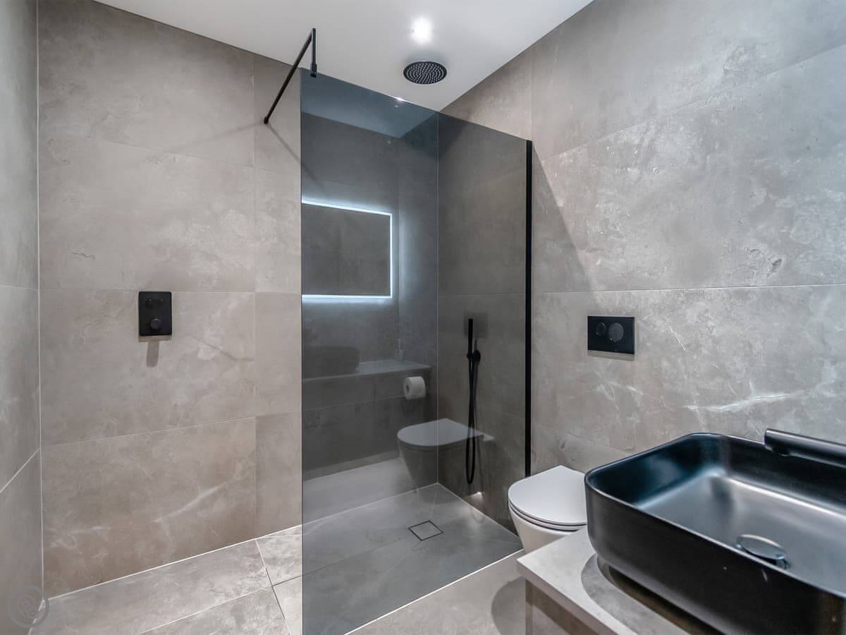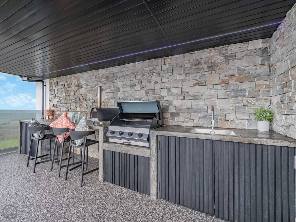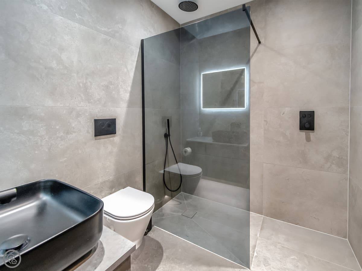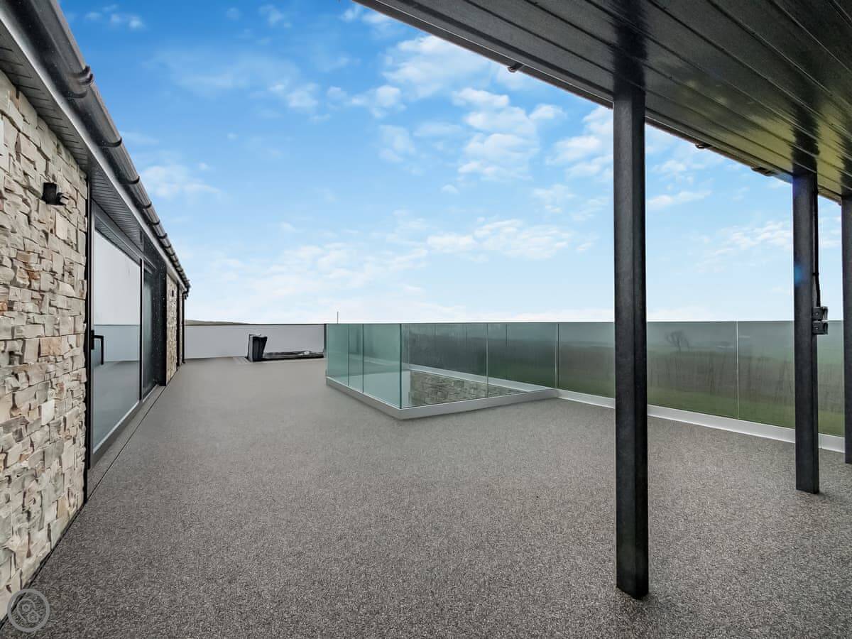 It’s a 5 Star property, sleeps four with two bedrooms. Both are king size beds and both have their own ensuite wet room. Everything is on one level. The main living area has big patio doors that open onto a terrace.