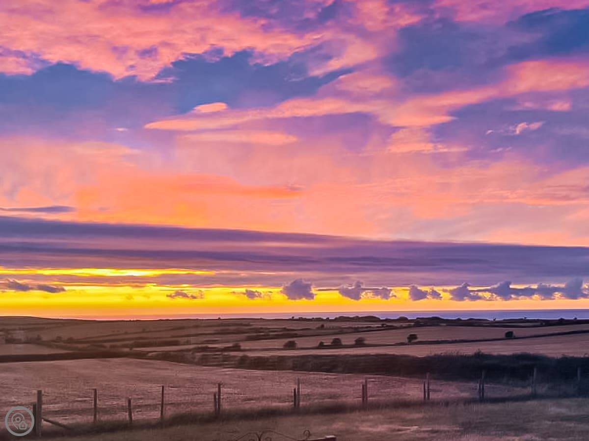 Hafan Dawel is a ground floor apartment in Felinwynt, Ceredigion. It’s attached to the main farmhouse where we live. The views are straight out over Cardigan Bay.