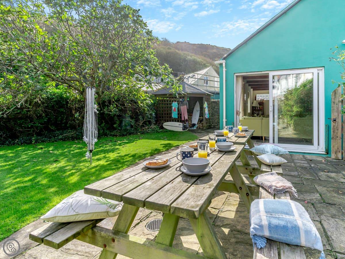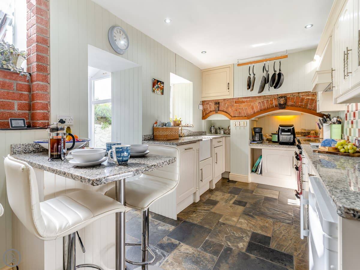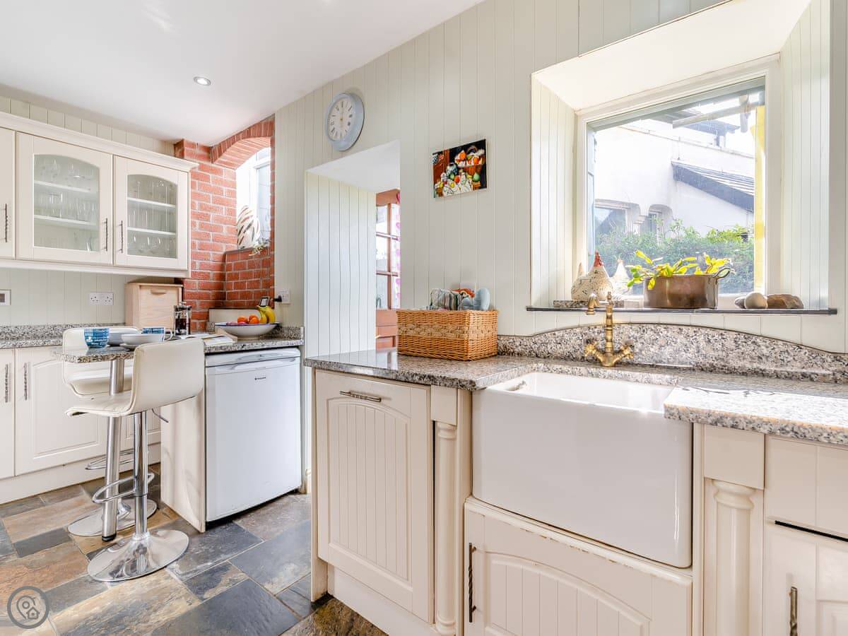 In terms of facilities, it's all there: bedding and towels, washing machine, dishwasher, Sky TV, WiFi, cot and highchair. There's a BBQ in the garden. No pets.