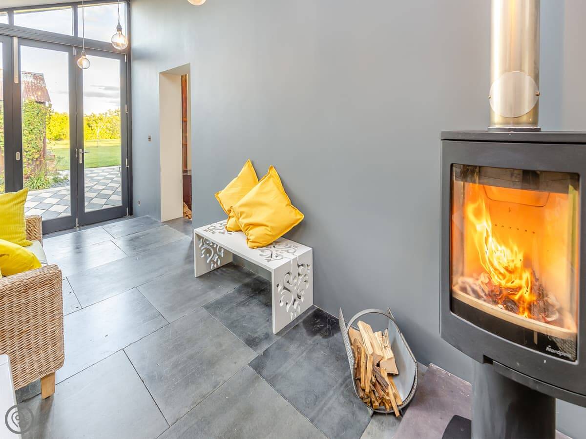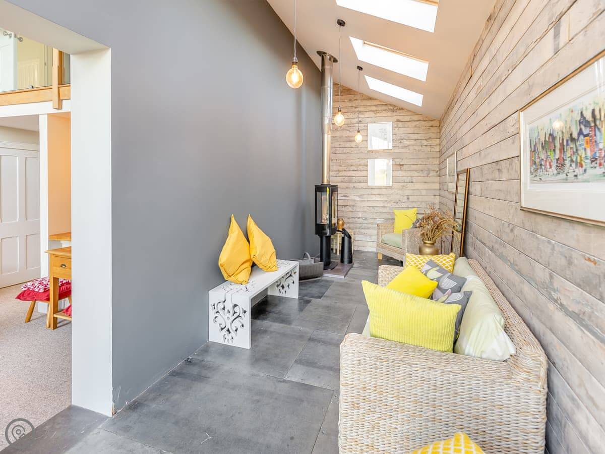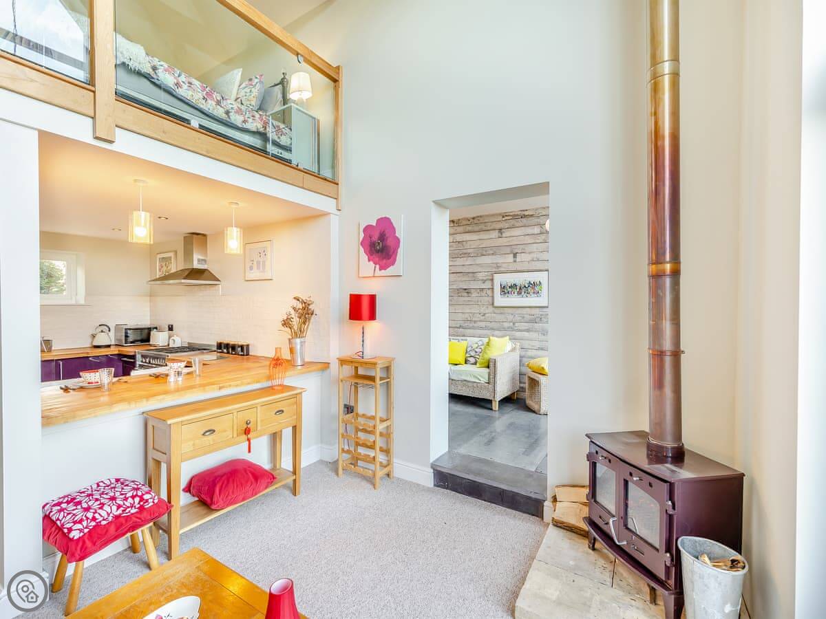 It's got a 4 Star rating. It's clean, comfortable, and in good order. There's wood burning stoves in the lounge and the bedroom, which is nice in winter. The bathroom is separate, in a bathhouse in the garden. It's a nice space. There's no hot water out there though, so it's a choice between a warm shower inside or a cold bath outside.