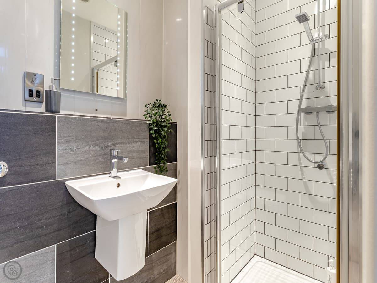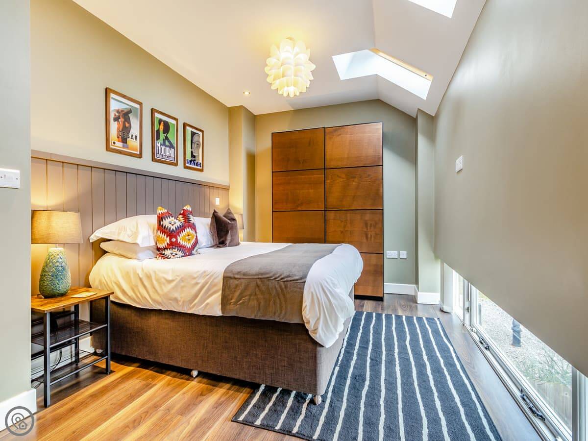It sleeps eight people. Four bedrooms, three bathrooms. Two of the bedrooms have their own shower rooms. All the beds are king size or super king, but they can be split into singles if you ask us beforehand. The stairs are normal.