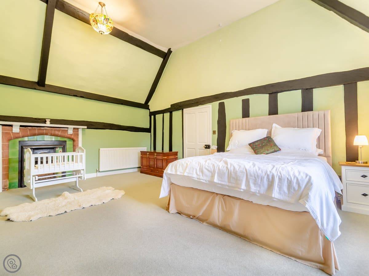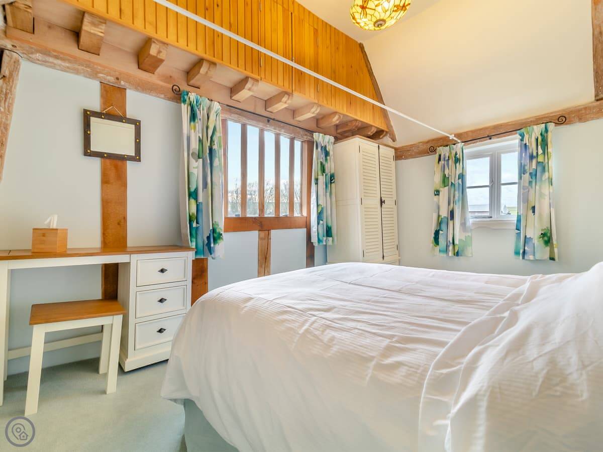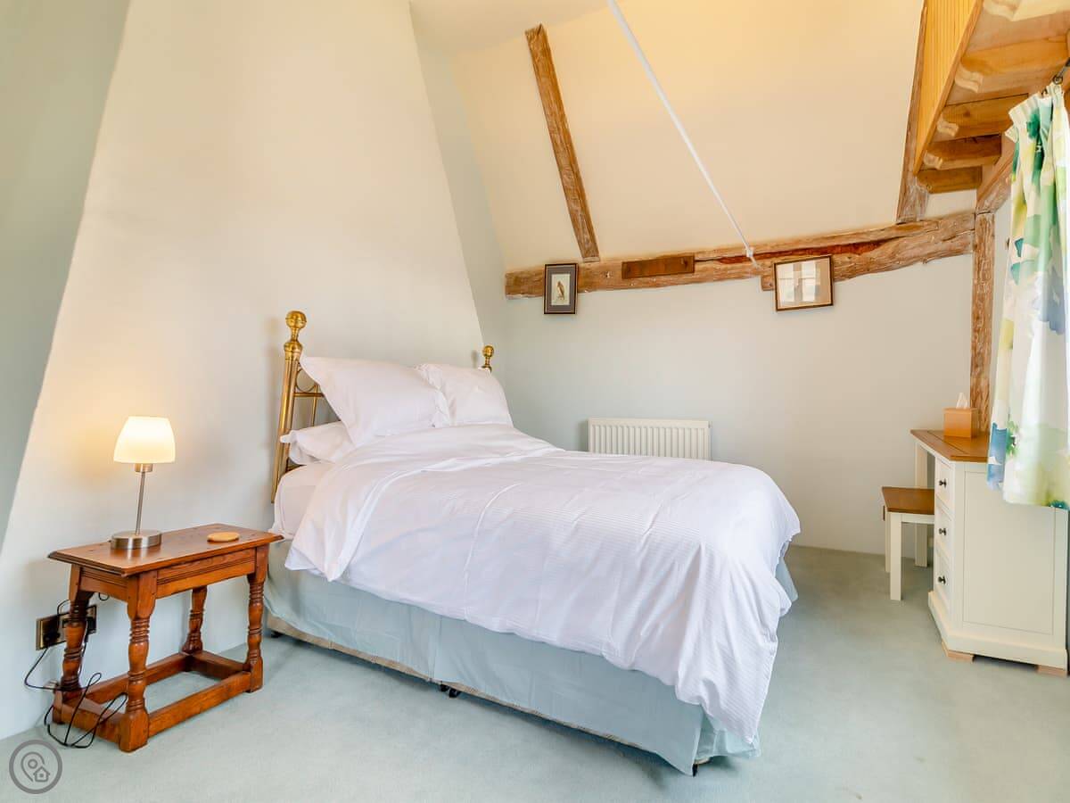 It sleeps eight. Four bedrooms, each with its own bathroom. The rating is 4 Star. It's been done up, but it's still an old place. The ceilings are low in parts and the beams are proper old timber. You'll need to mind your head.
