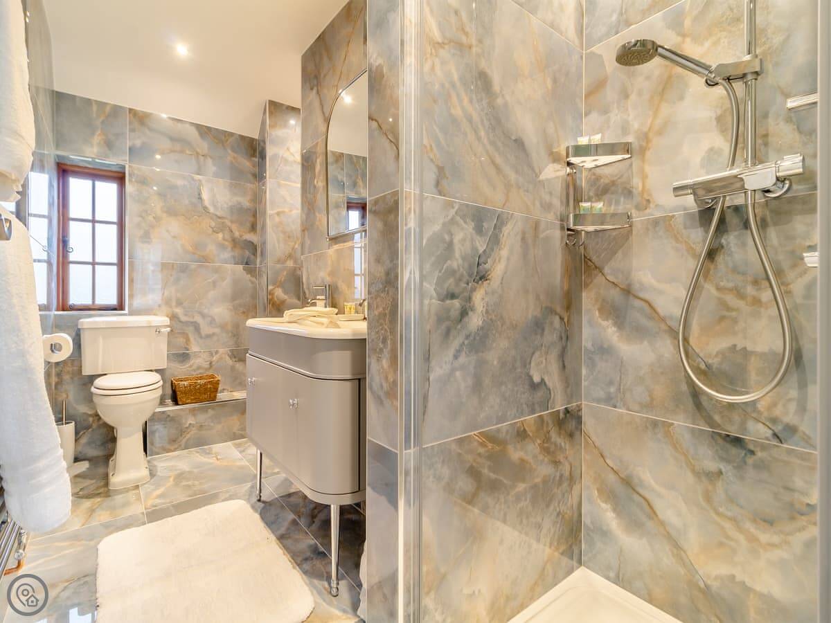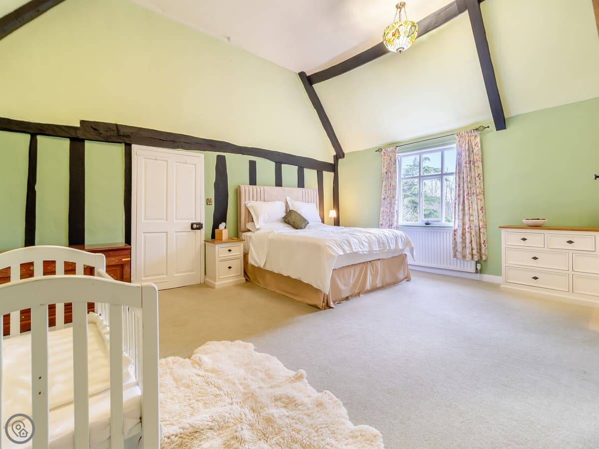 As for facilities: it's got the things you'd expect. Washing machine, dishwasher, WiFi. Bedding and towels are included. There's parking and an electric vehicle charger. They allow up to three dogs. There's a cot and highchair if you need them.