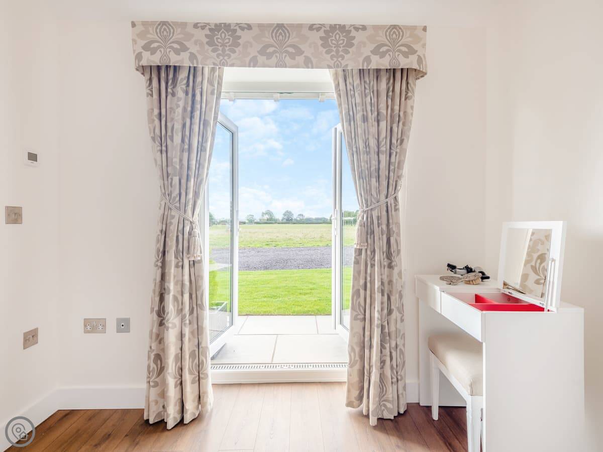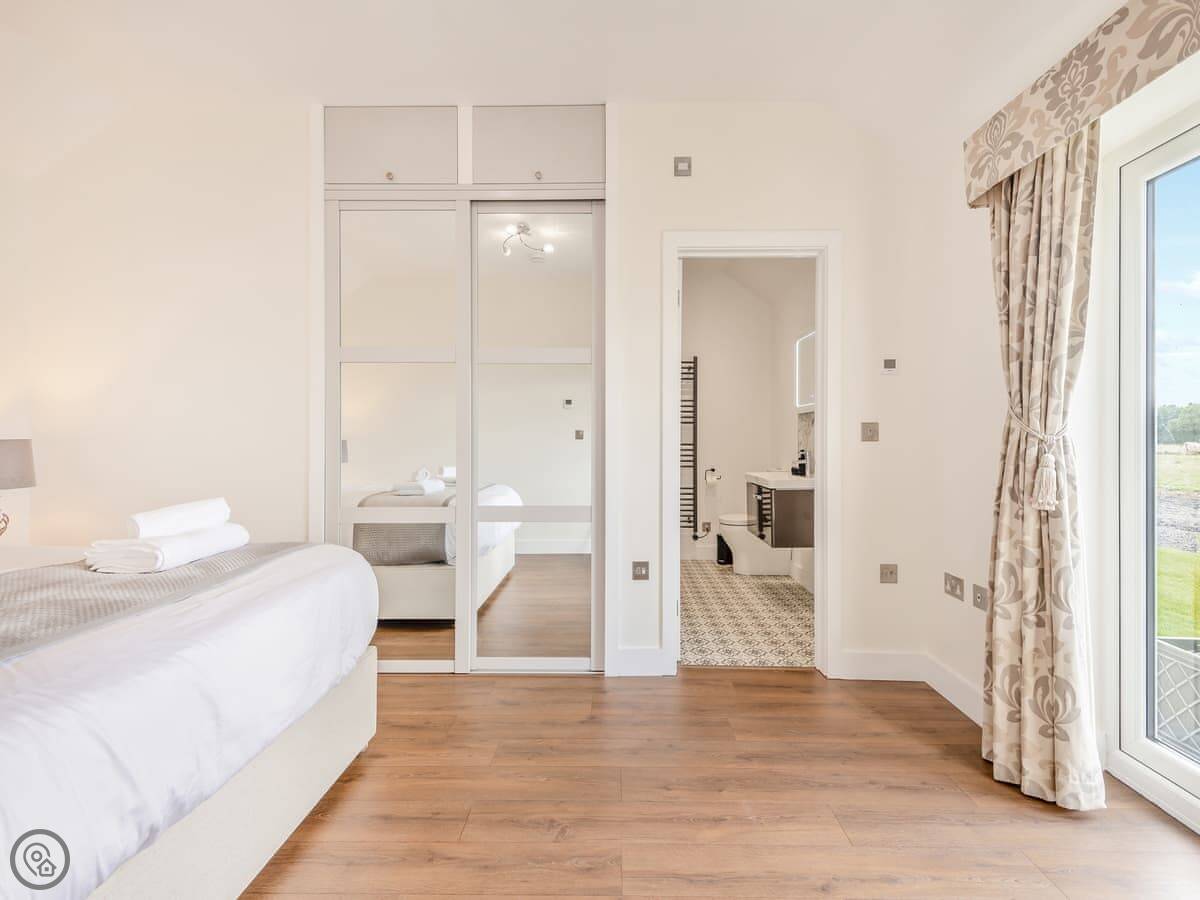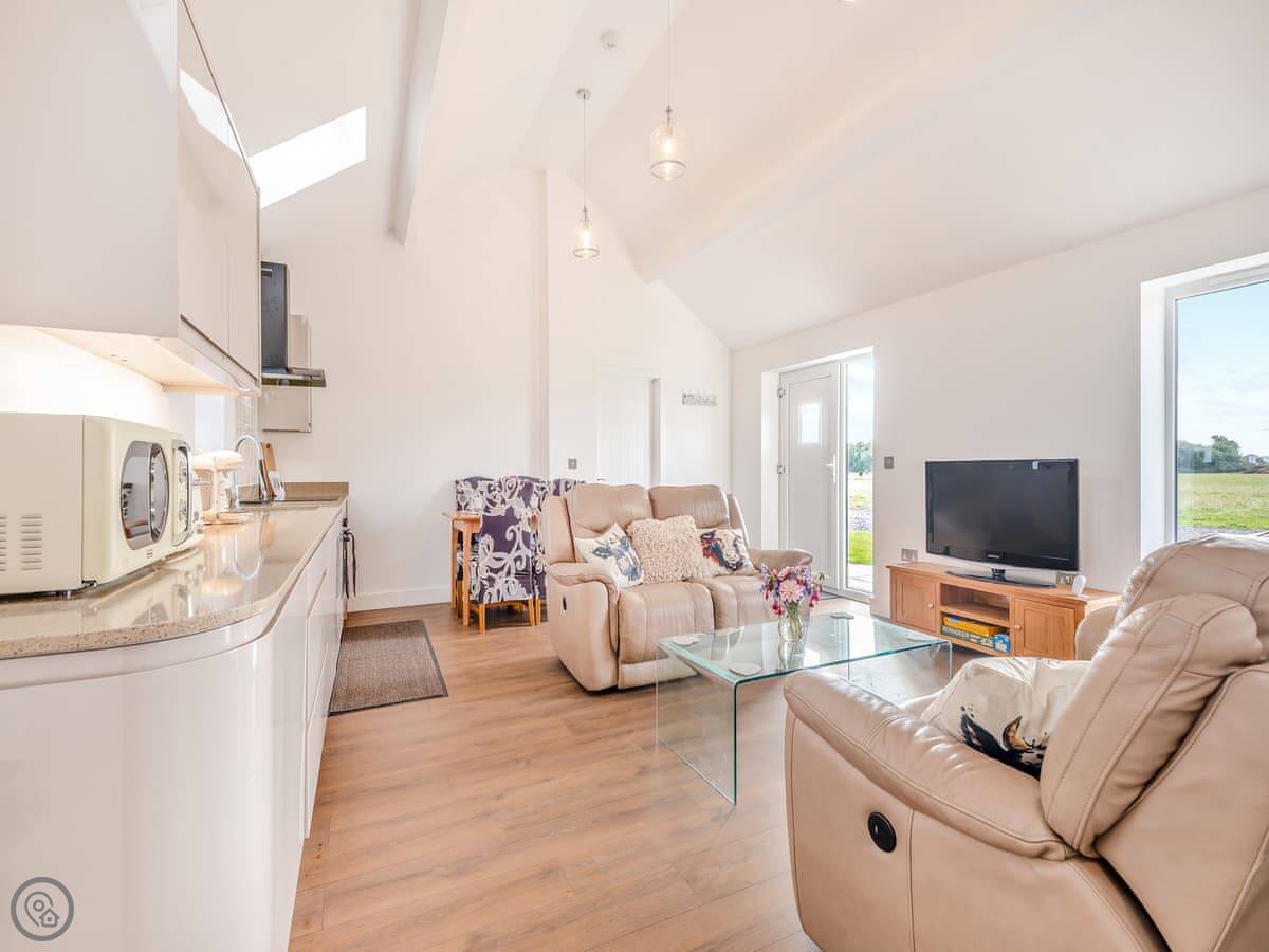 It sleeps four. Two bedrooms, both downstairs. They each have their own shower room, which is handy. It's got a 4 Star rating. It's comfortable and everything is new, but it's not enormous. The main room is open plan, with the kitchen, dining and sitting area all together.