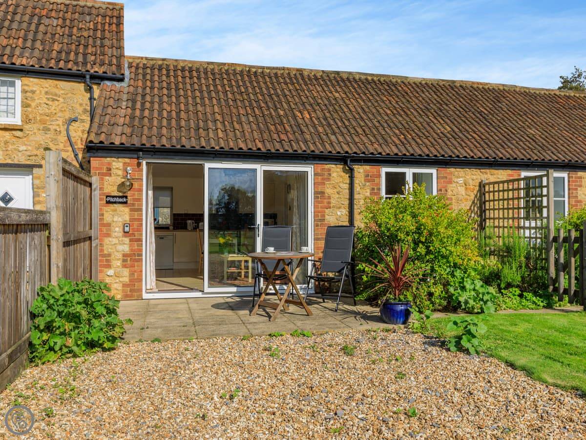 Pitch Back is in Hewish, Somerset. It's a one-bedroom cottage for two people. It's on what used to be a farm with a water wheel, which is where the name comes from.