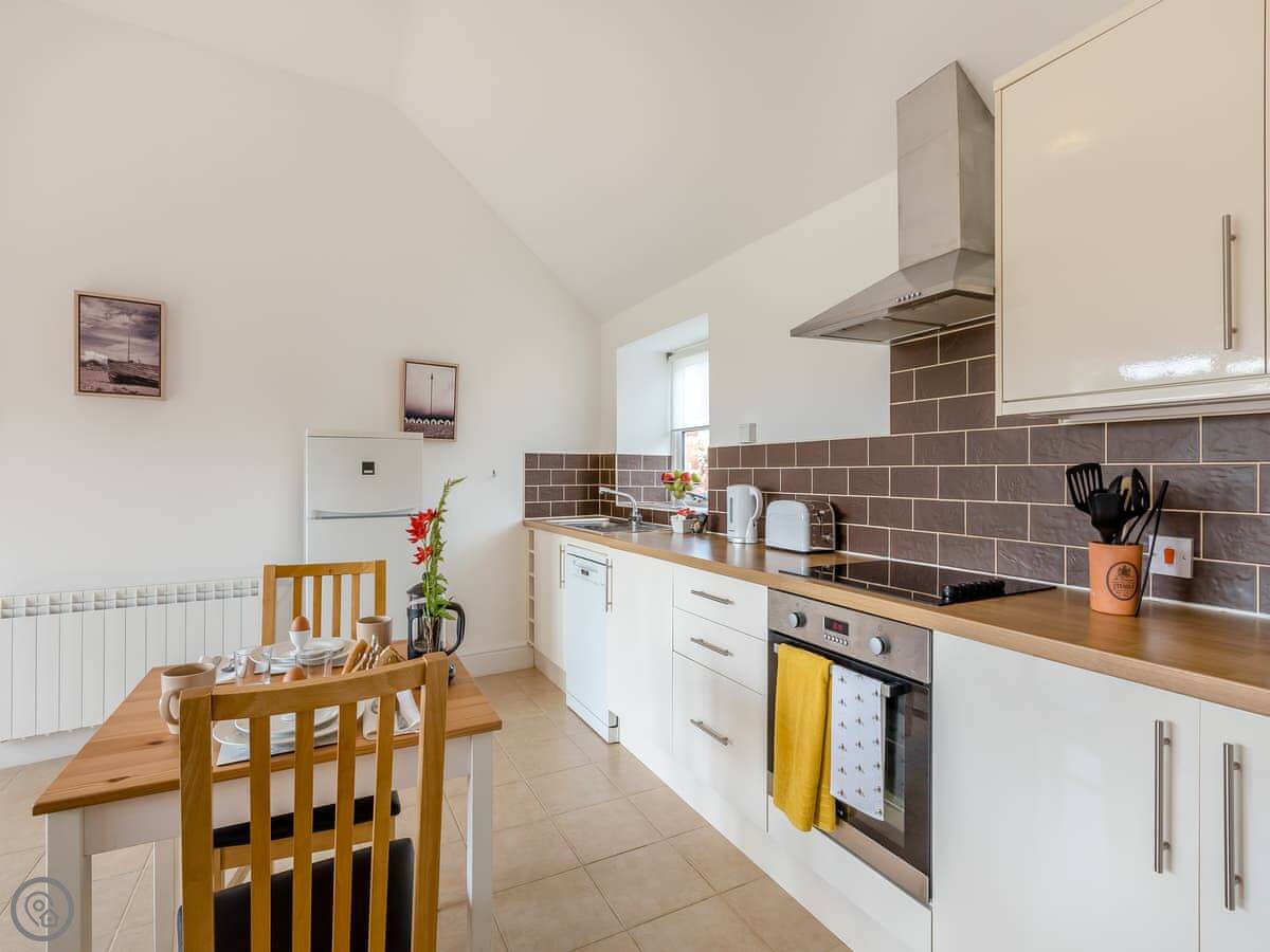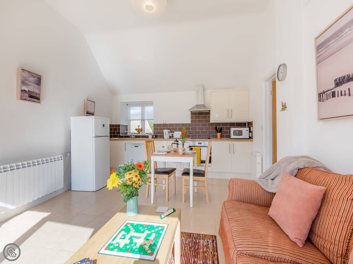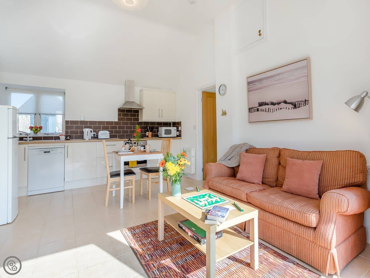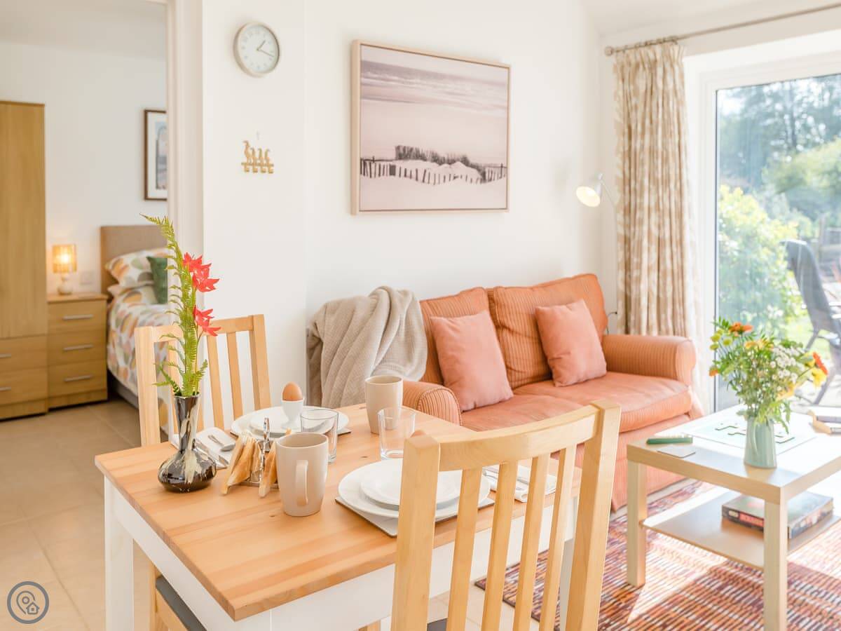 It's a 4 Star place. That means it's comfortable and well finished. The layout is open plan downstairs. The doors open out onto a south-facing garden, which gets the sun. Good for sitting out.