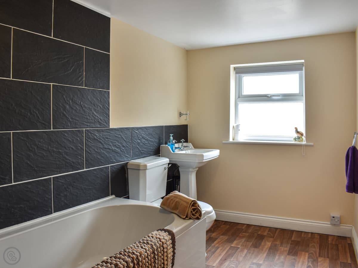 The bathroom is on the ground floor, which is handy. The bedroom is upstairs.