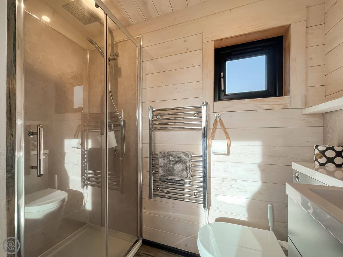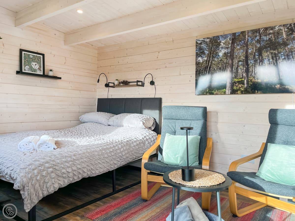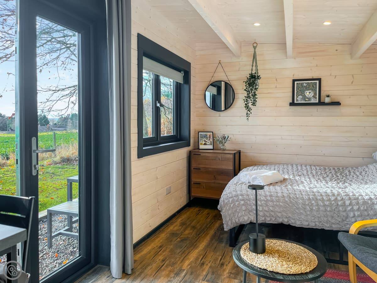 It sleeps two. One bedroom with a double bed and an en-suite shower room. It's a 4 Star place, so it's comfortable and everything works. It's well insulated and heated.