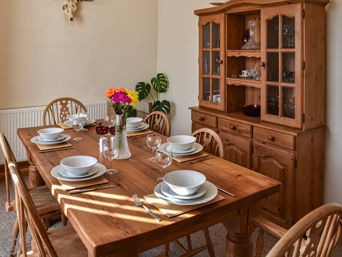 The kitchen is well equipped. The dining room is large. The sitting room has sofas, a Smart TV, and some board games. It's comfortable rather than stylish.