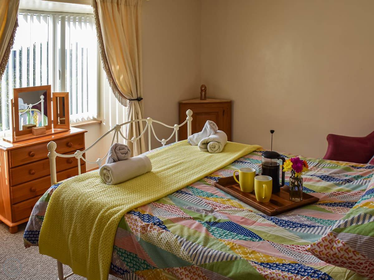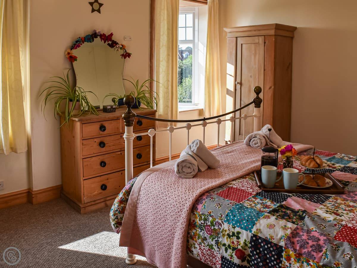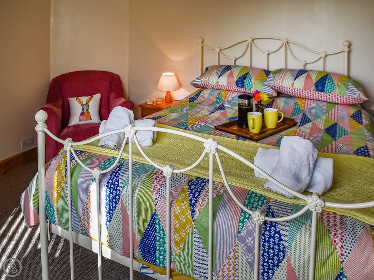 It's fine for dogs, up to two. There's a garden, parking, WiFi, a washing machine, and a dishwasher. Bedding and towels are included. We can provide a cot, highchair, and stairgate.