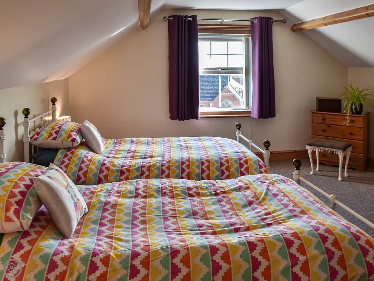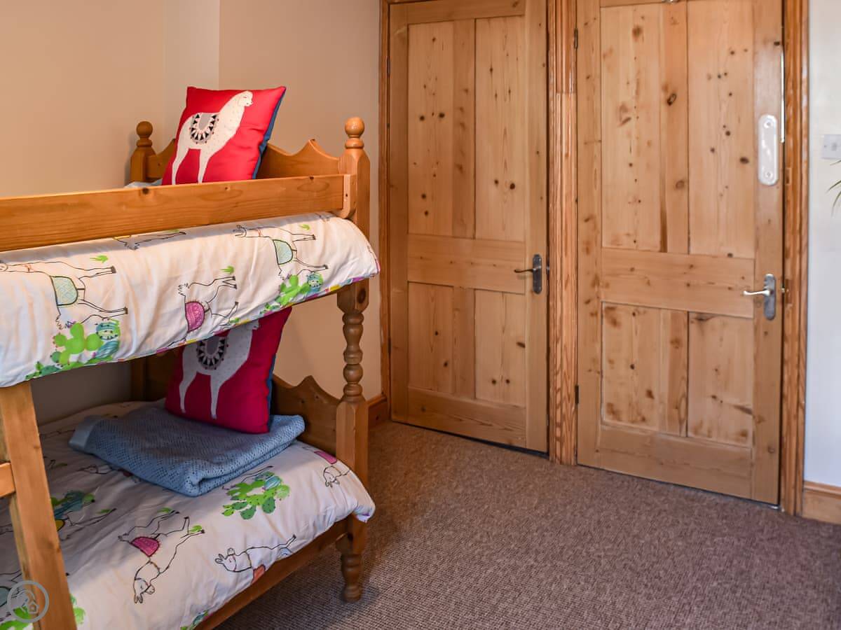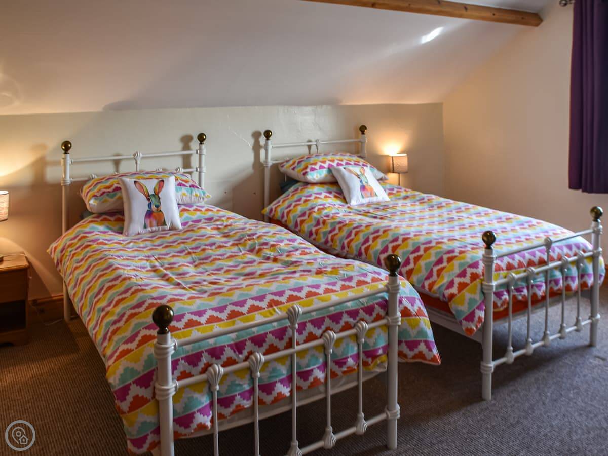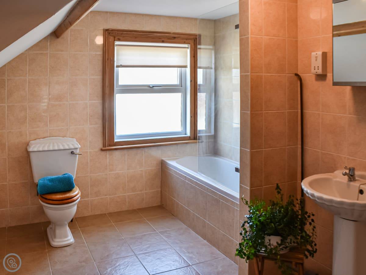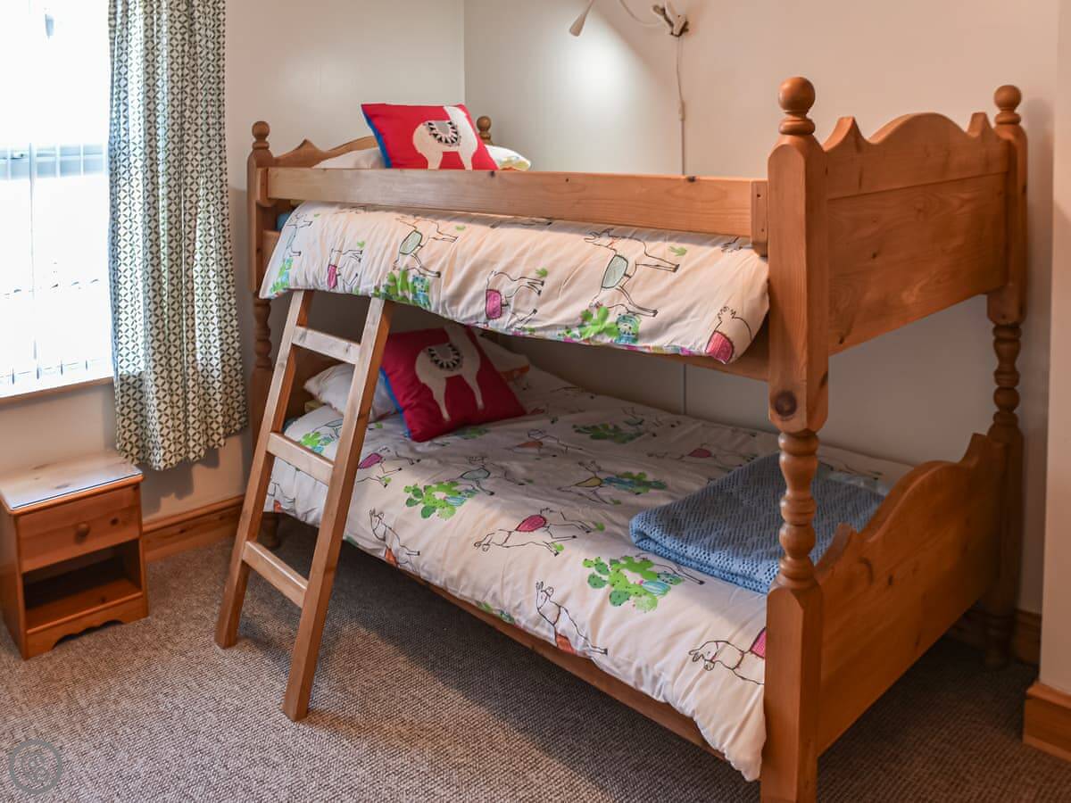 You've got four bedrooms. Two doubles, one with bunk beds, and a twin. There are two bathrooms. One on the first floor with a bath, another on the second floor with a shower. The stairs are fine, but there are a lot of them.