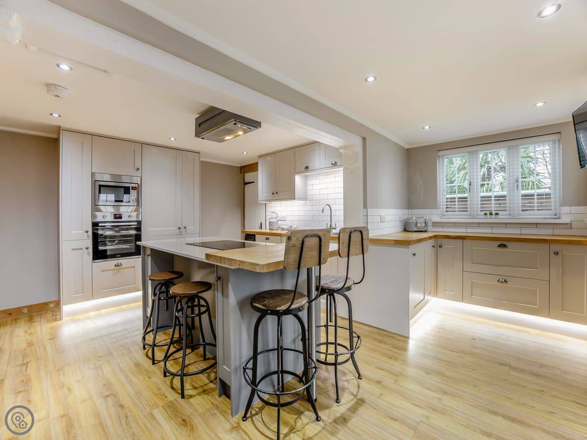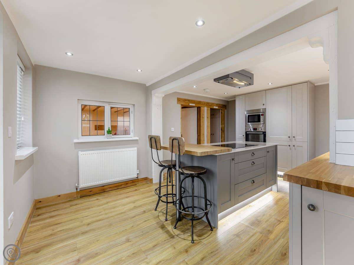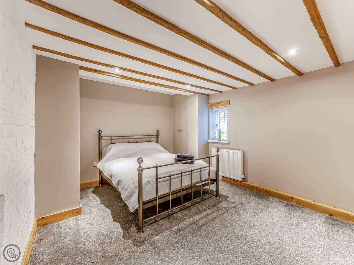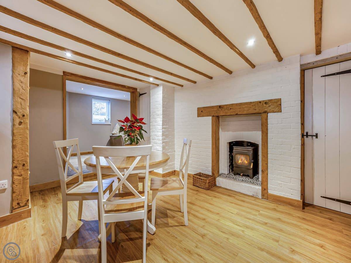 It sleeps four. Two bedrooms, both with their own bathrooms. You can bring two dogs. There's a wood burning stove and a private hot tub in the enclosed garden.