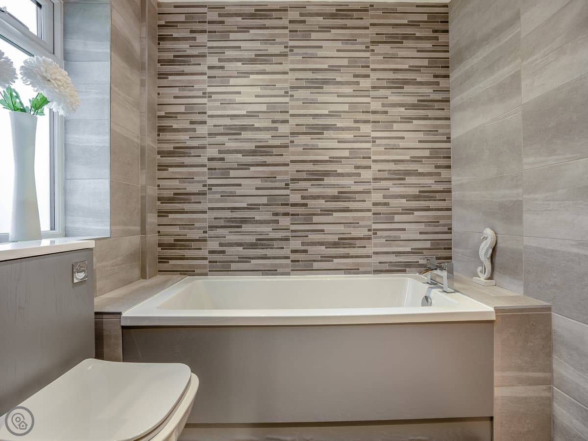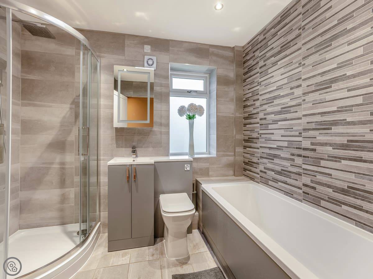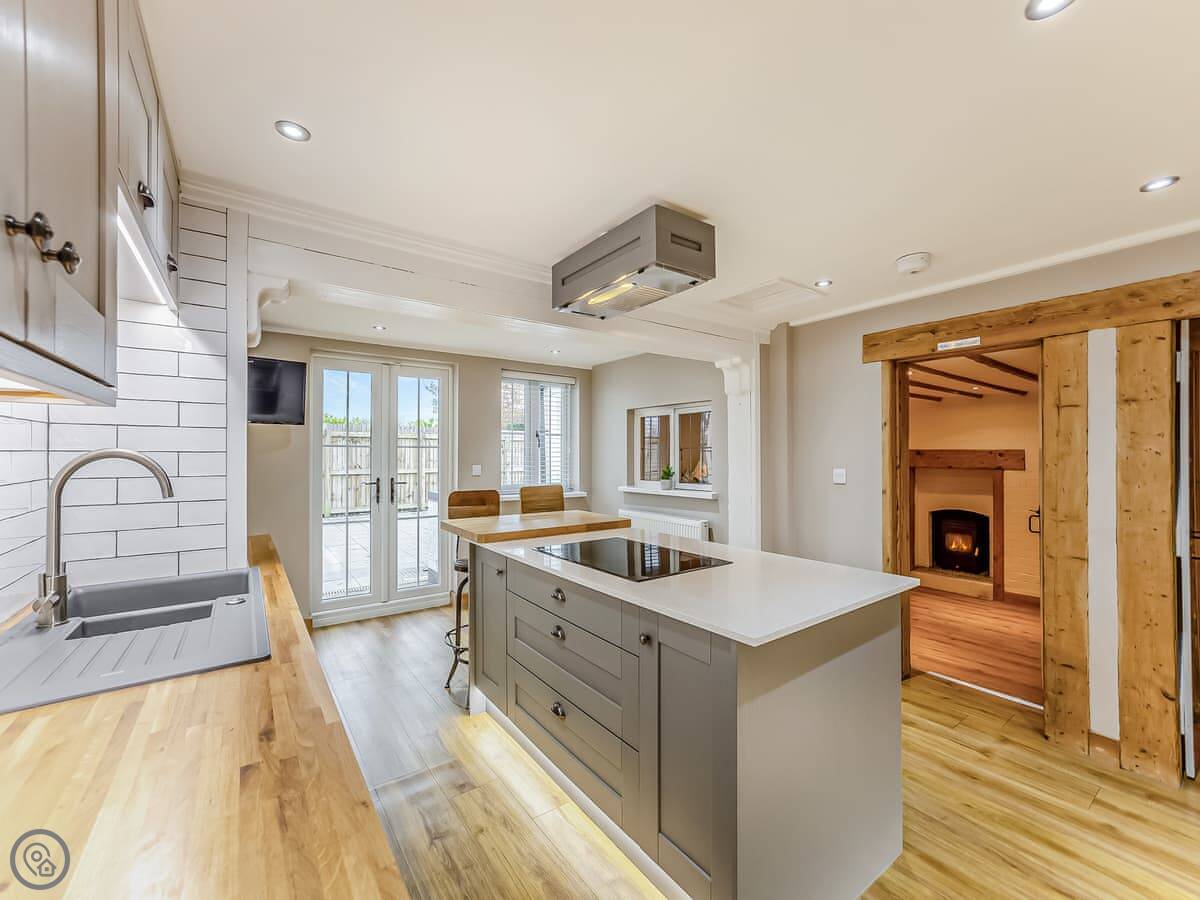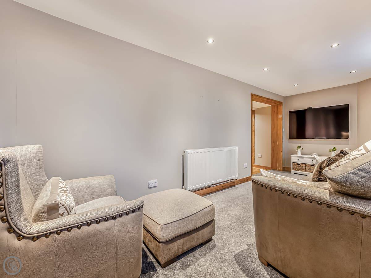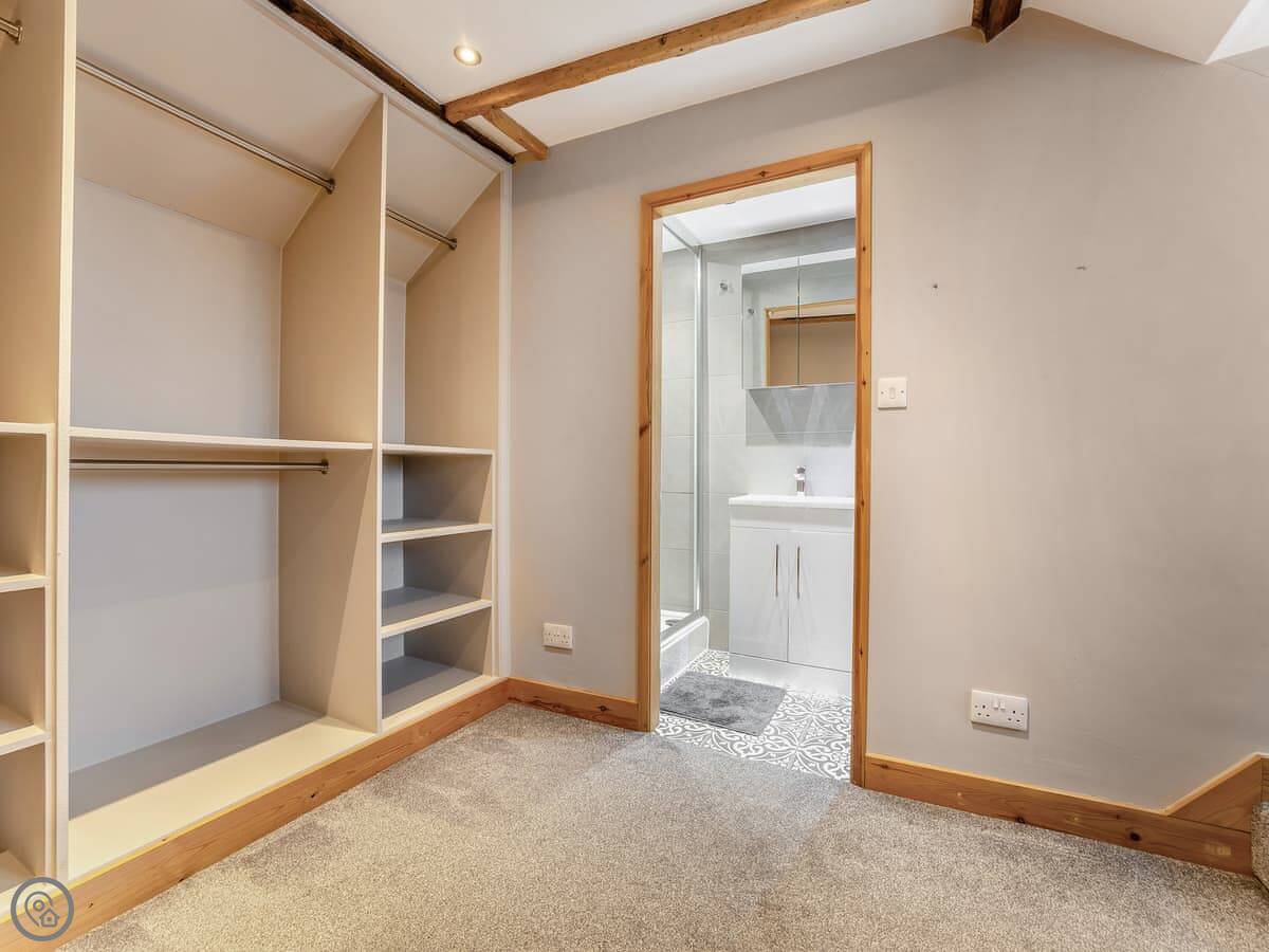It sleeps four. Two bedrooms, both with their own bathrooms. You can bring two dogs. There's a wood burning stove and a private hot tub in the enclosed garden.